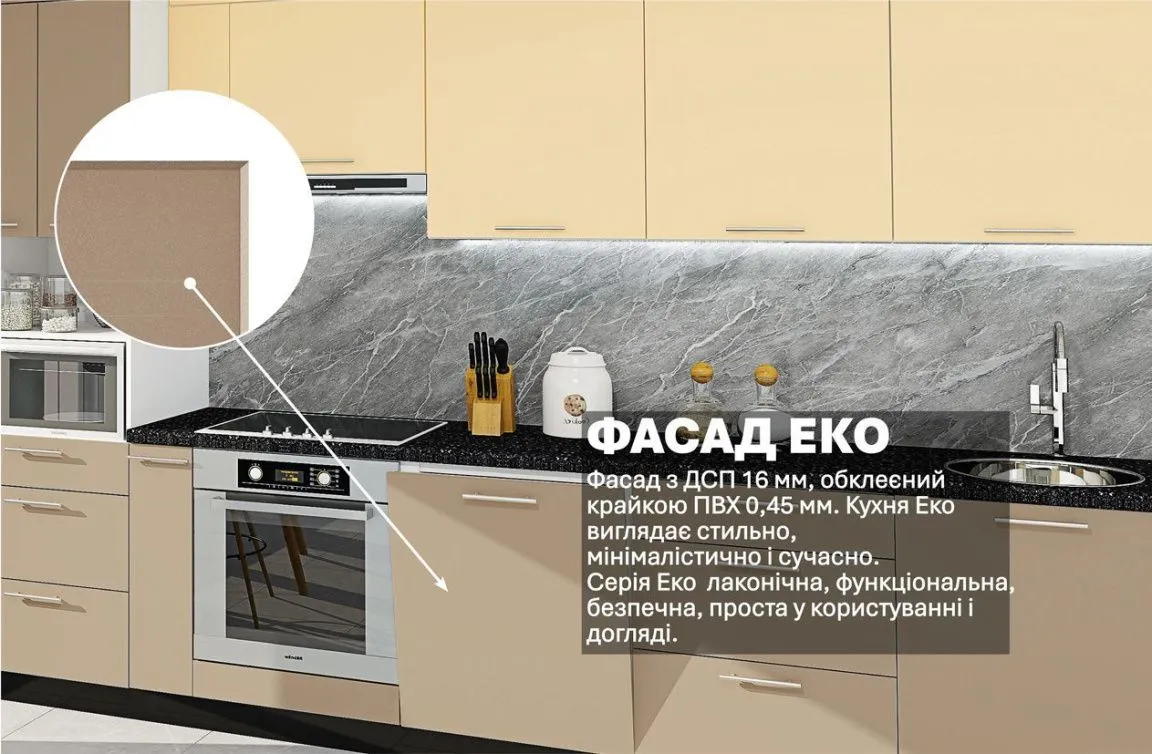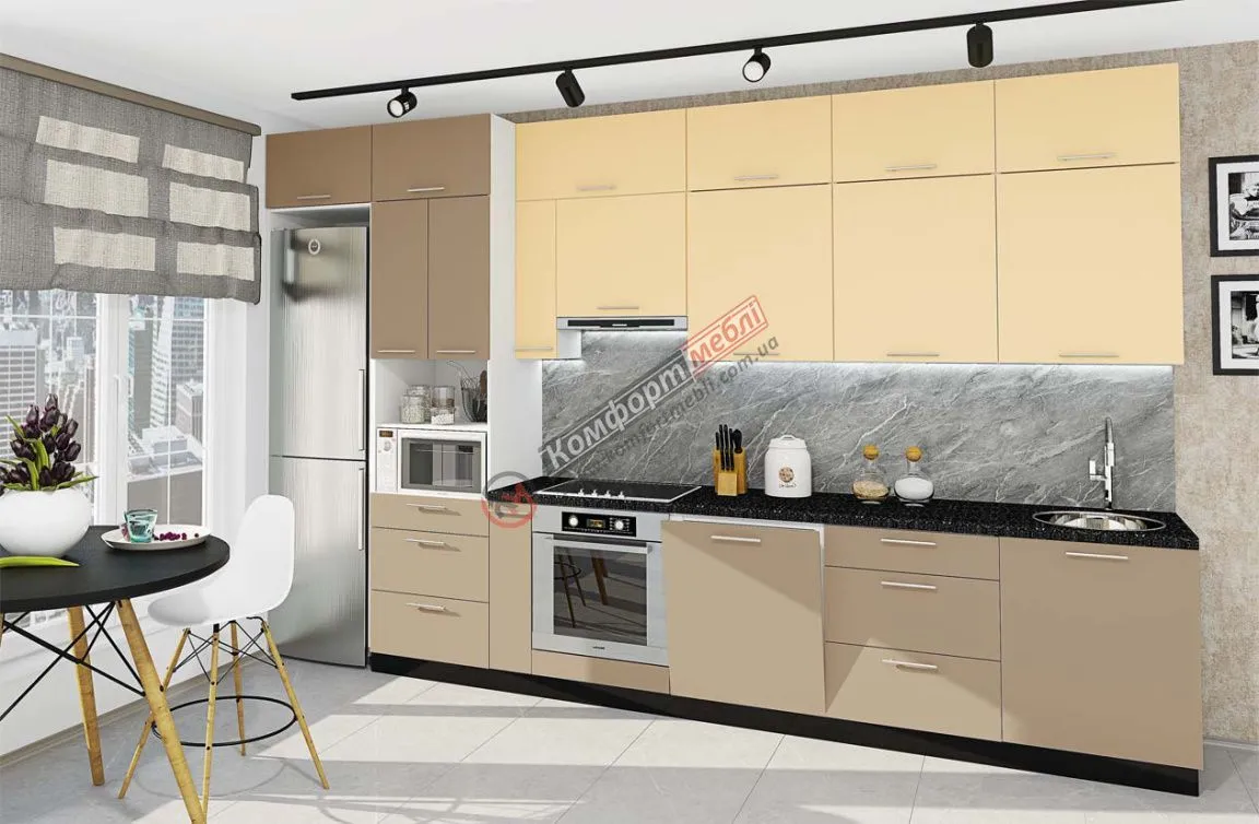 Готова кухня Комфорт Еко 3.8 м пряма Ваніль, Капучіно