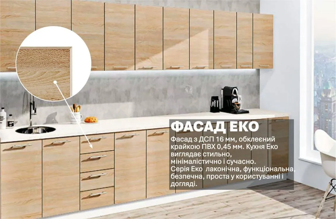 Готова кухня Комфорт Еко 3.9 метра пряма Дуб натуральний