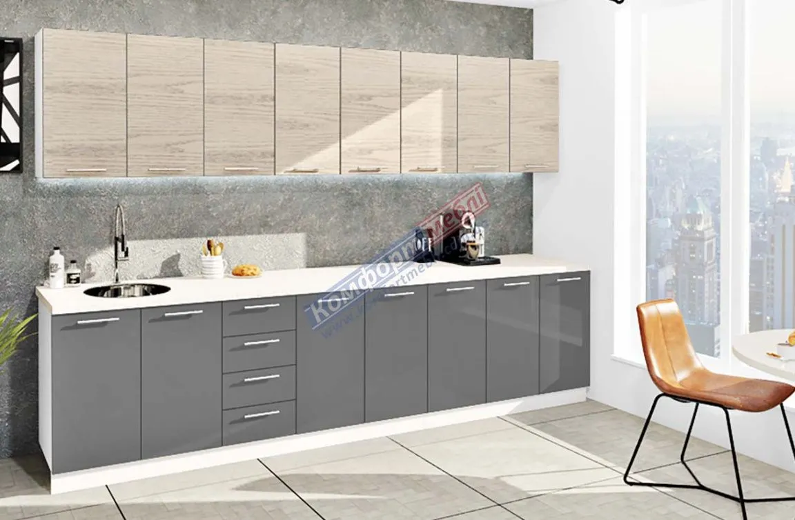 Готова кухня Комфорт Еко 320 см пряма Графіт, Дуб білений