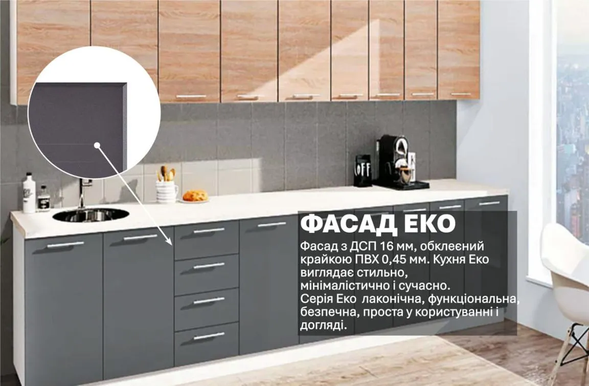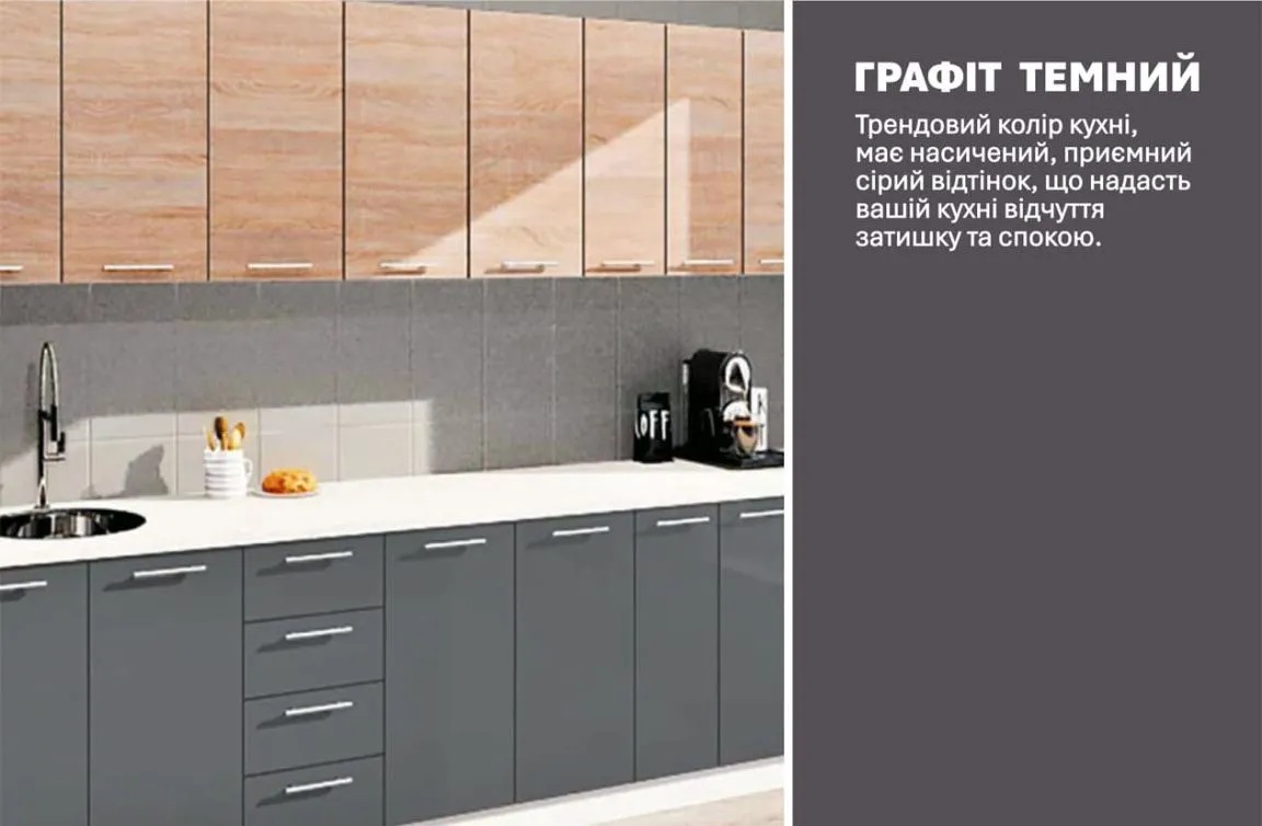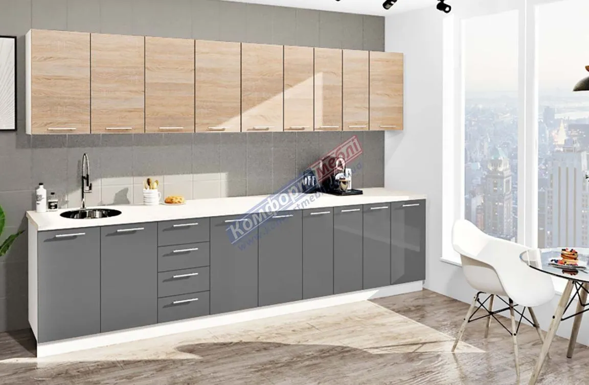 Готова кухня Комфорт Еко 3300 мм пряма Графіт, Дуб сонома