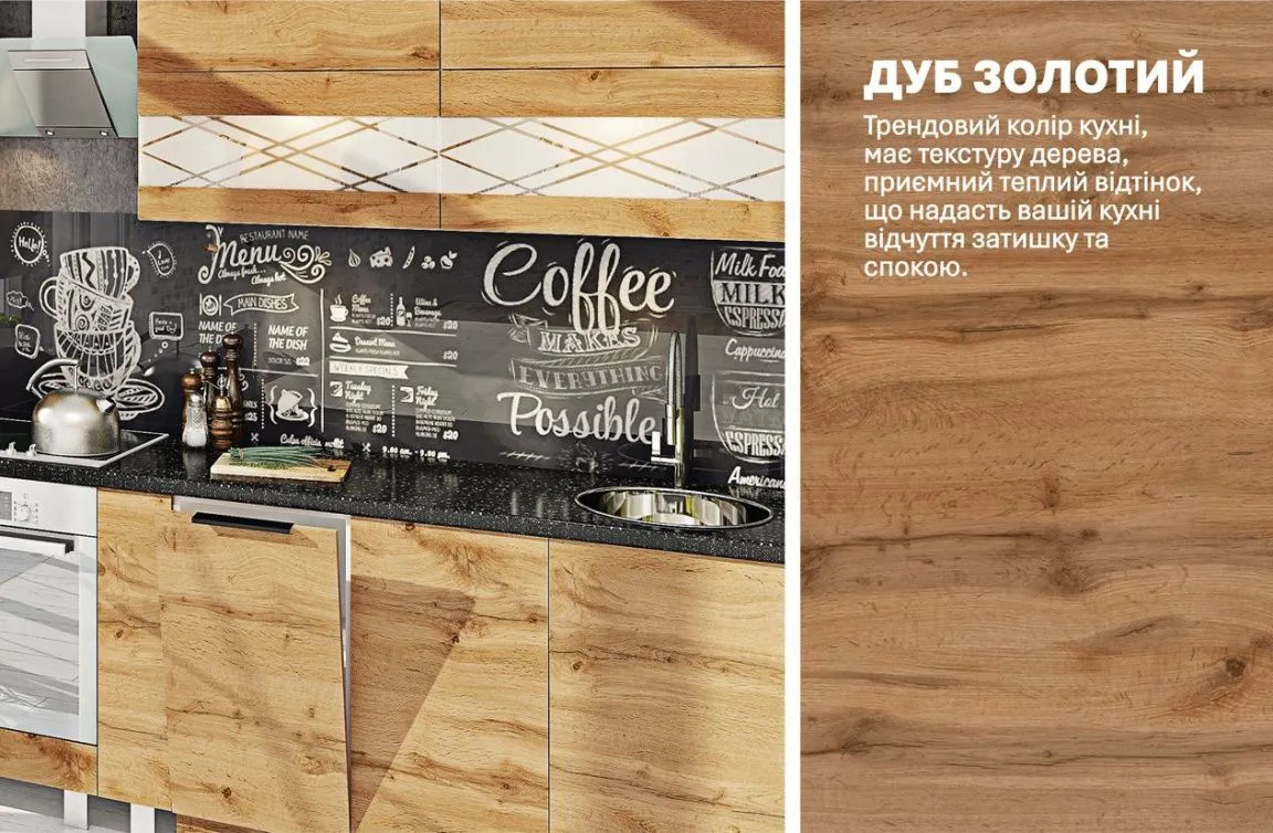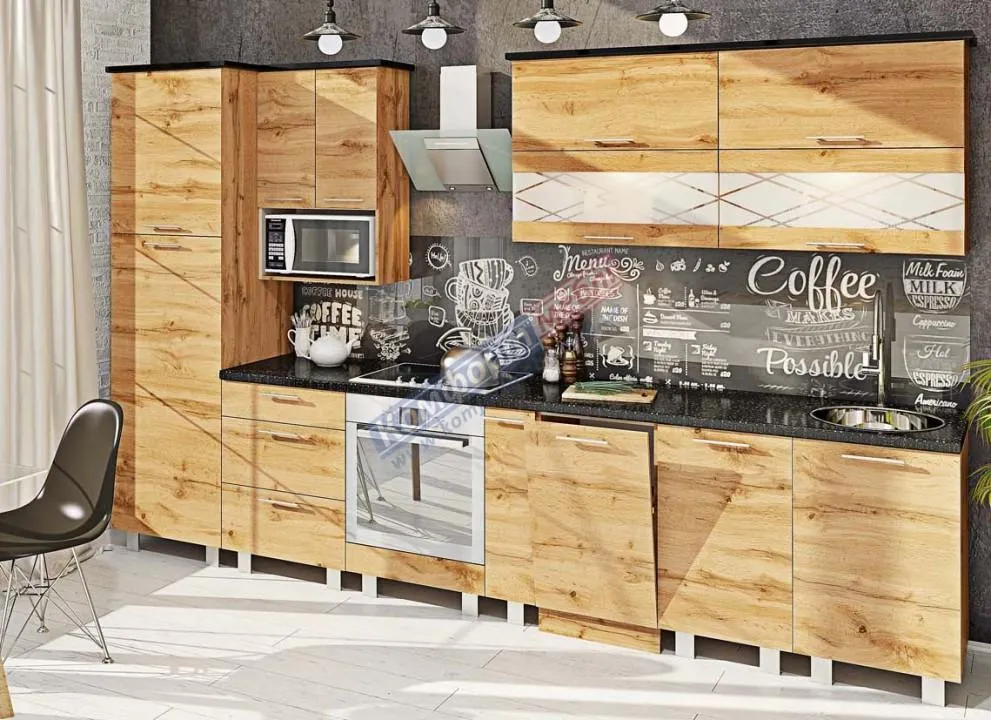 Готова кухня Комфорт Еко 340 см пряма Дуб золотий 1