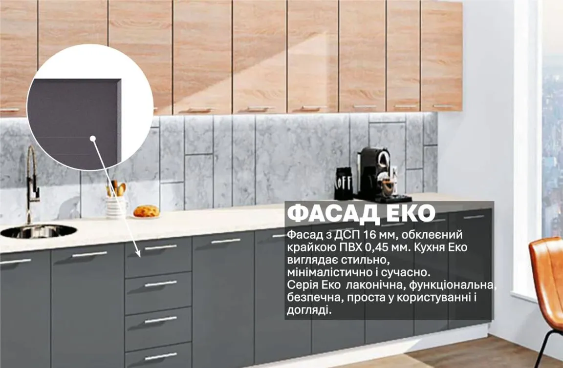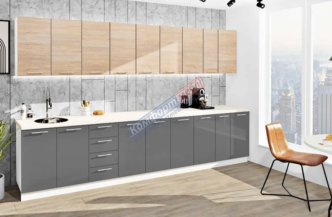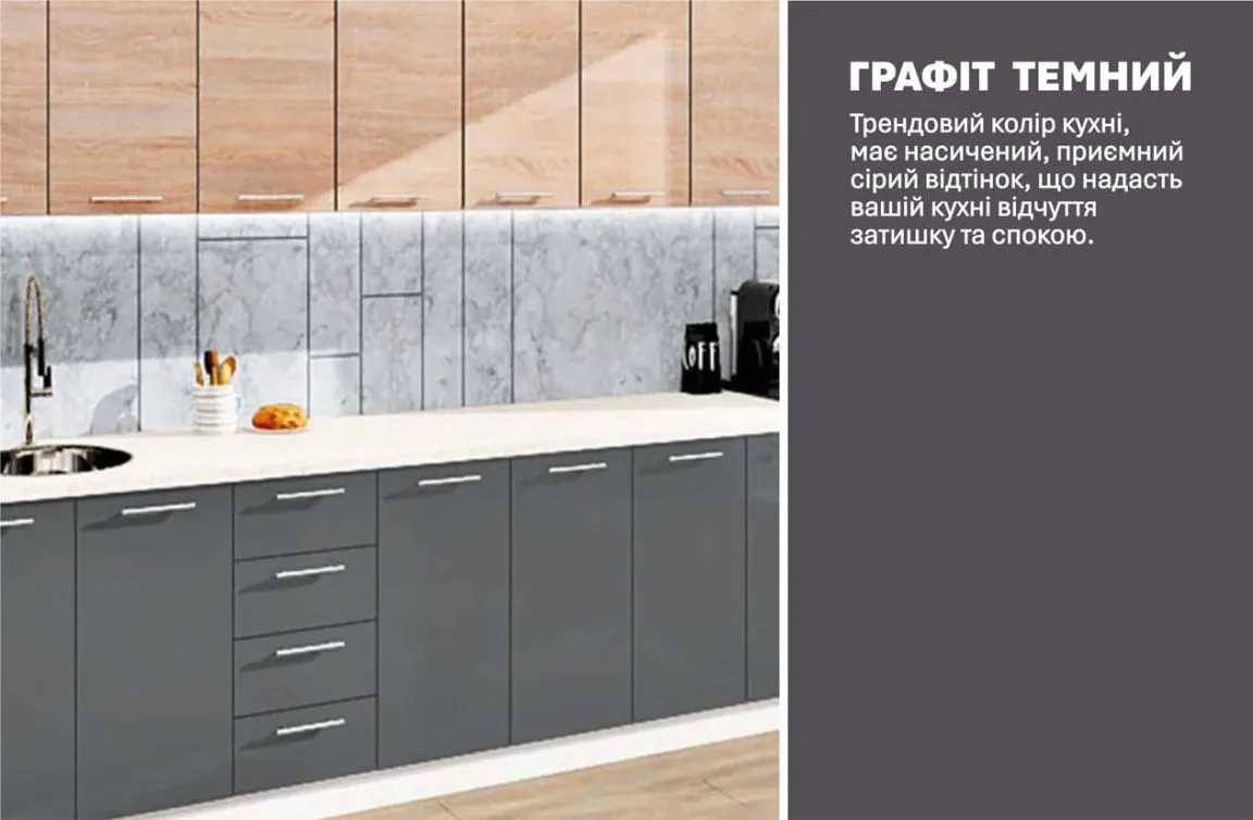 Готова кухня Комфорт Еко 3500 мм пряма Графіт, Дуб натуральний
