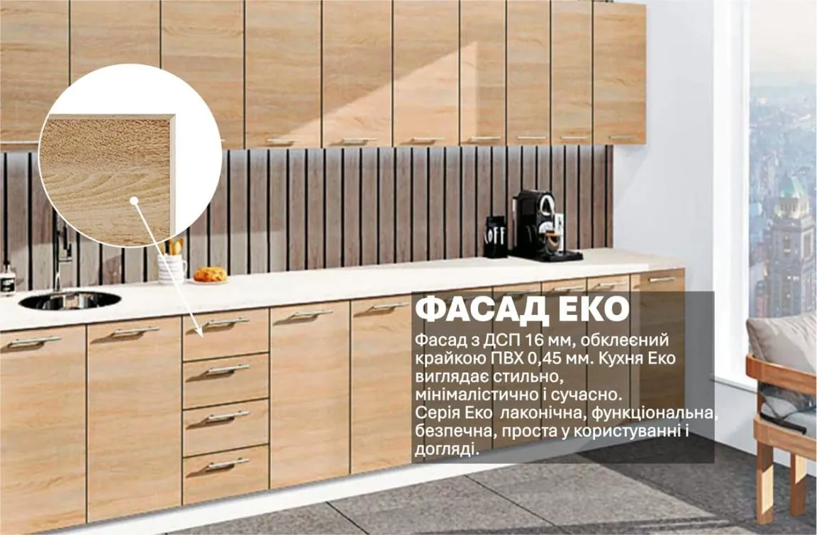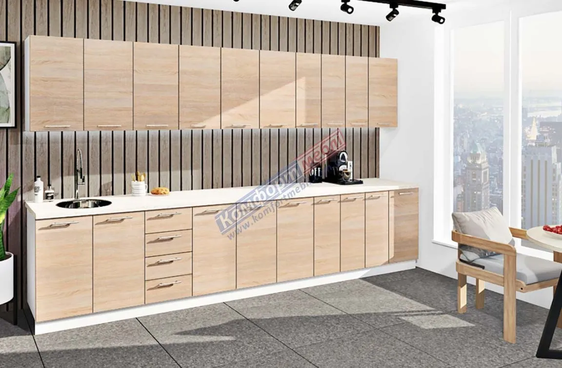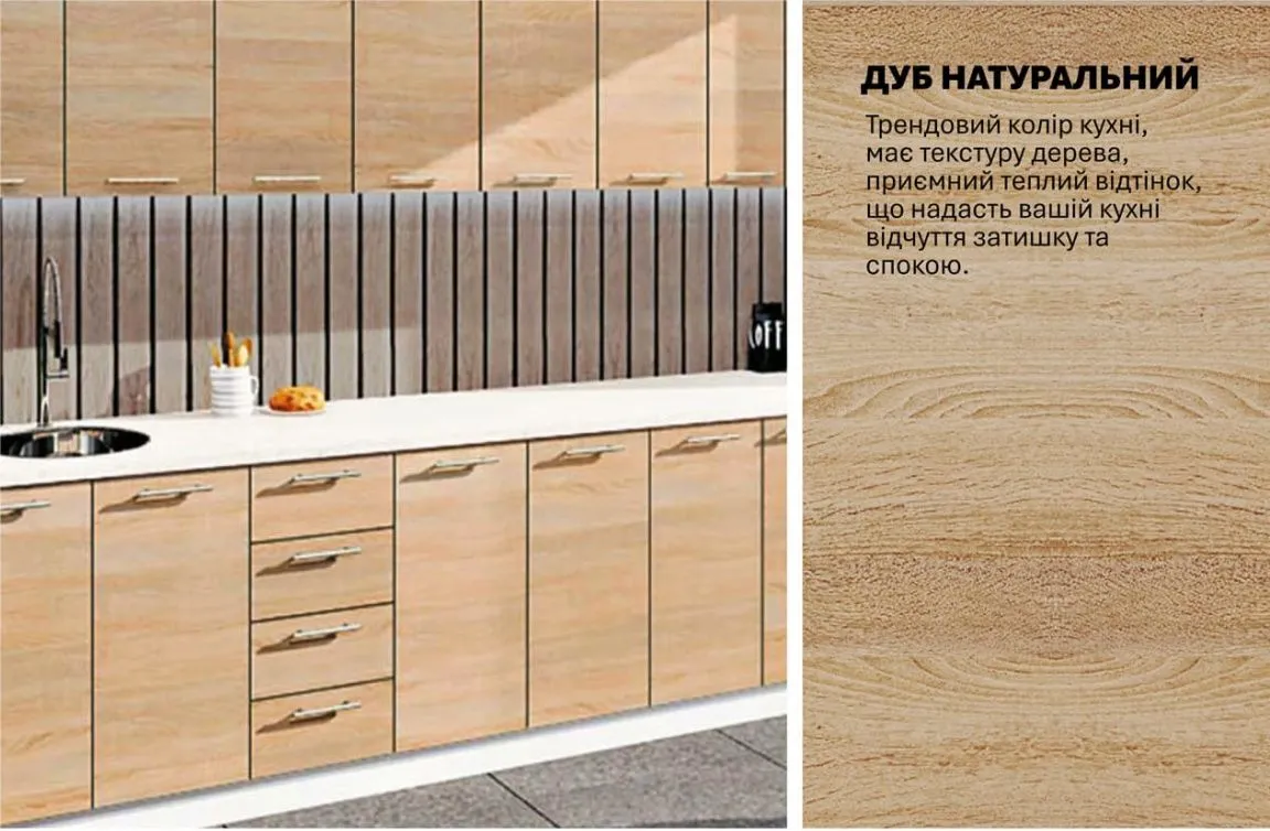 Готова кухня Комфорт Еко 370 см пряма Дуб натуральний
