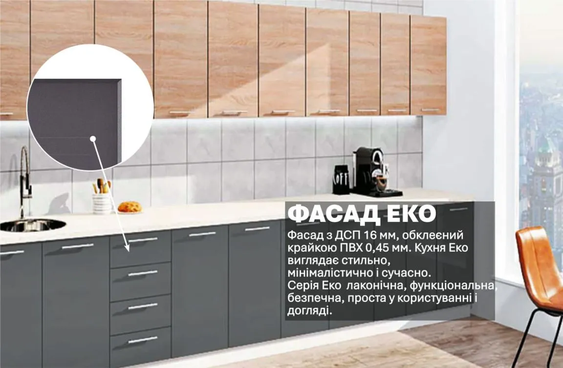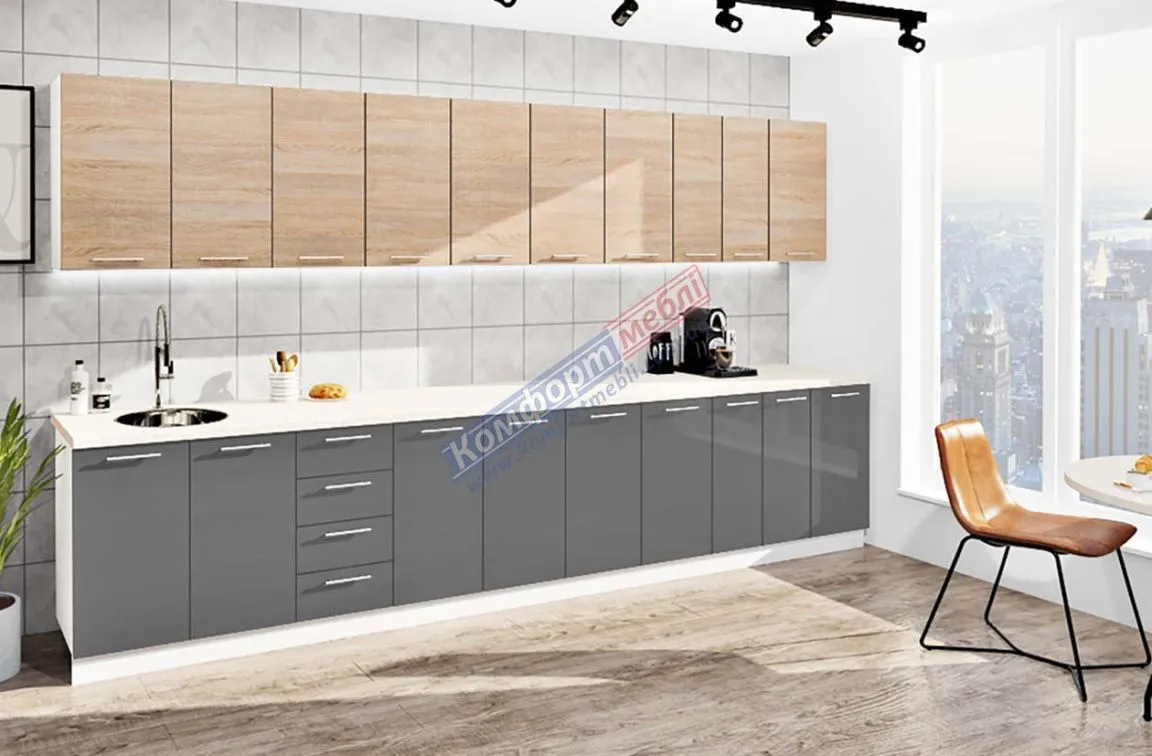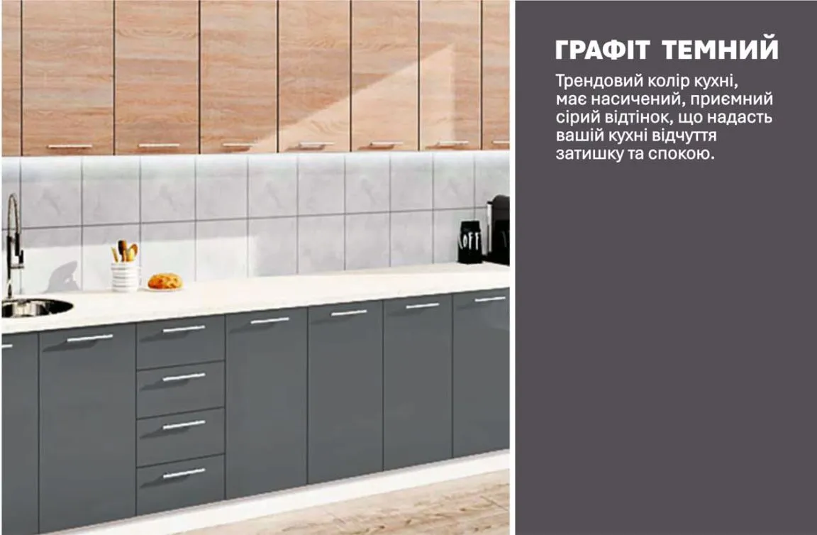 Готова кухня Комфорт Еко 380 см пряма Графіт, Дуб сонома