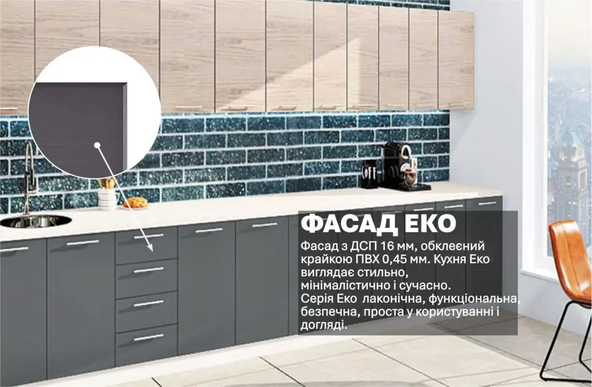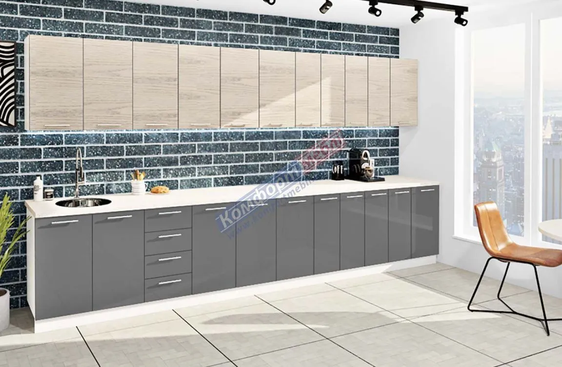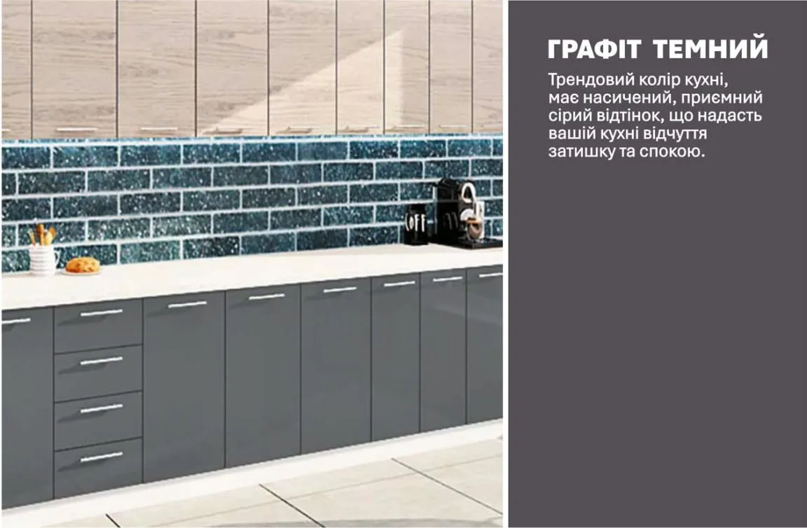Готова кухня Комфорт Еко 4 метра пряма Графіт, Дуб білений