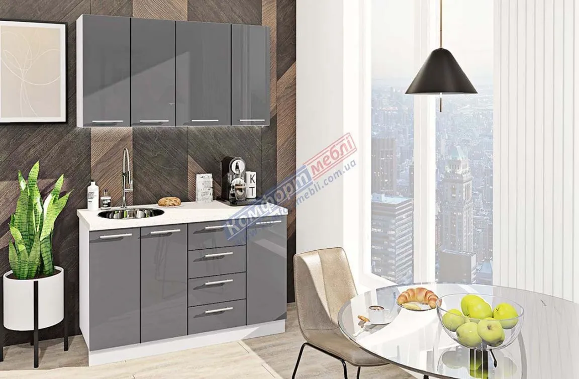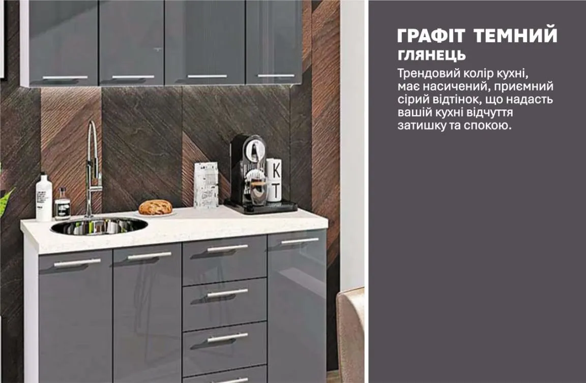 Готова кухня Комфорт Фарбований високий глянець 1.3 м Графіт