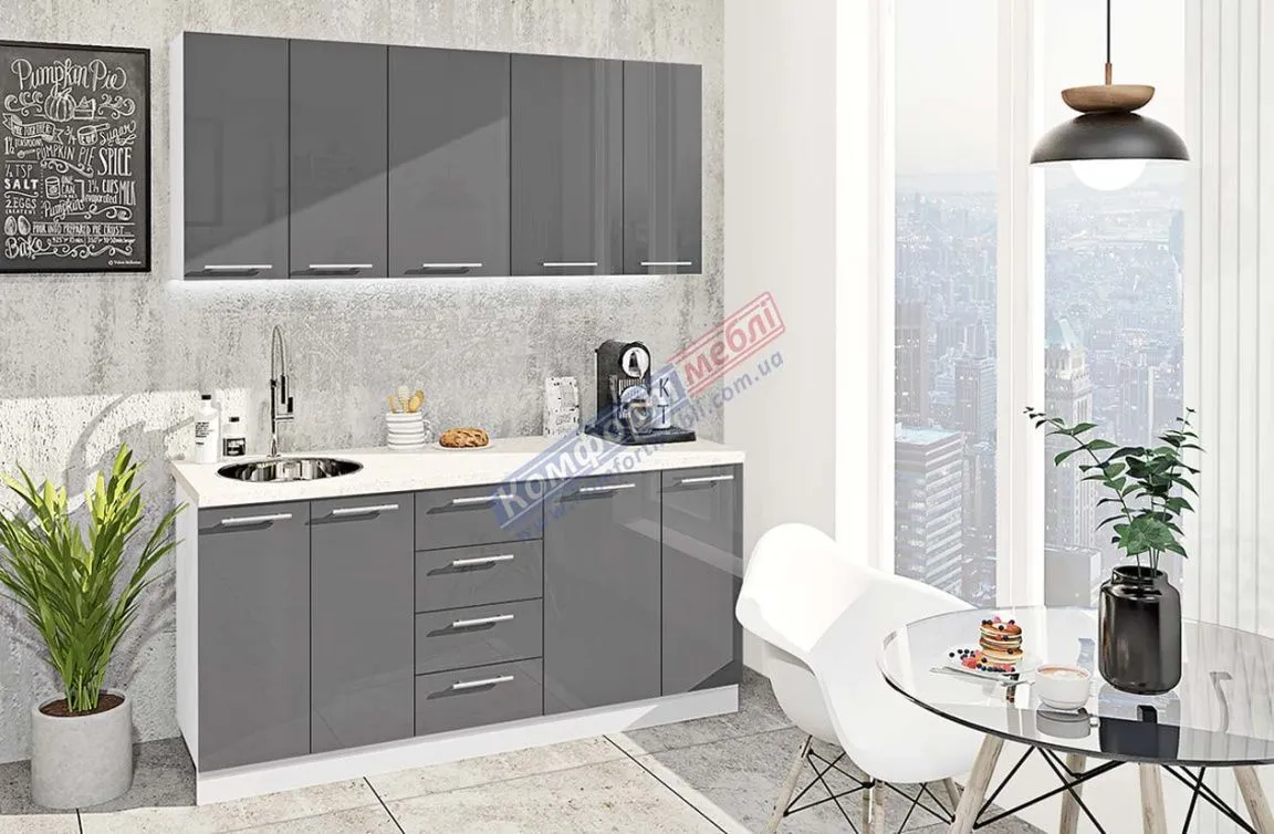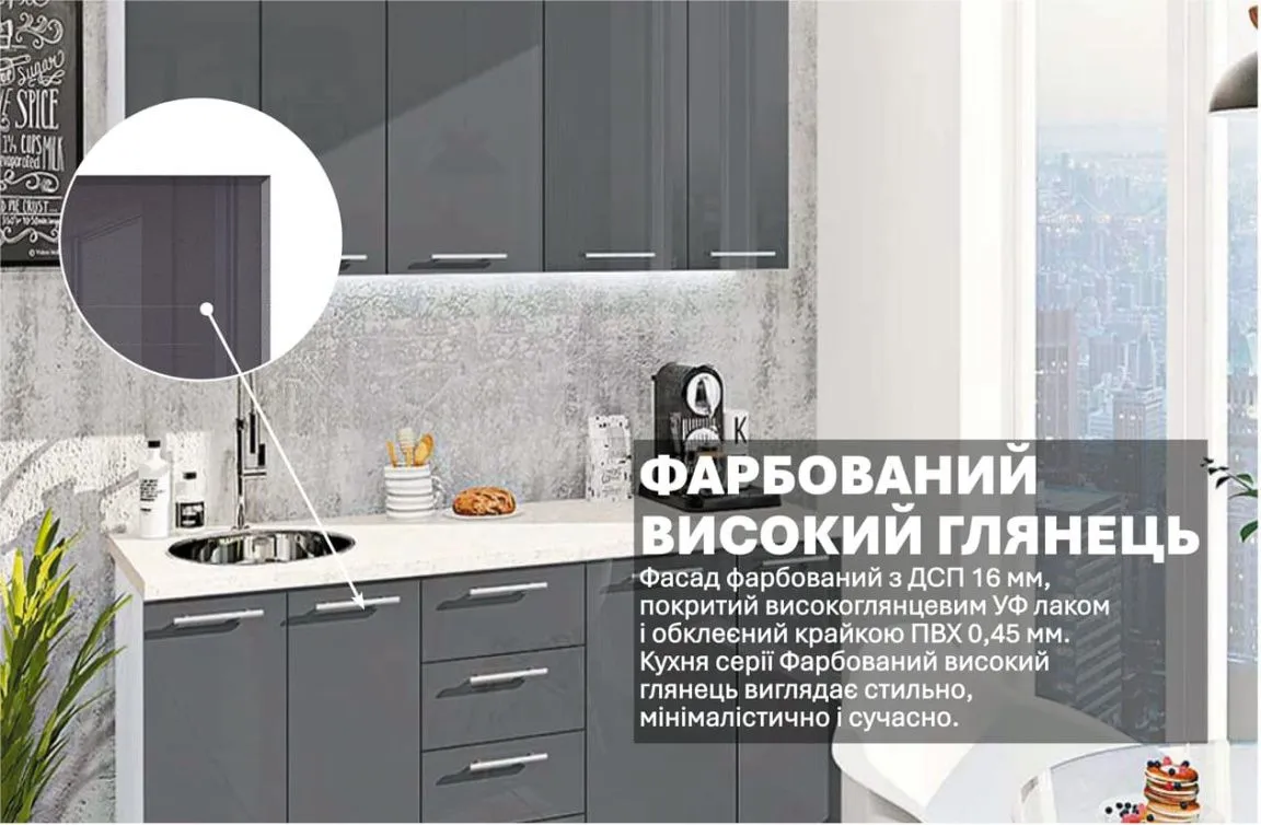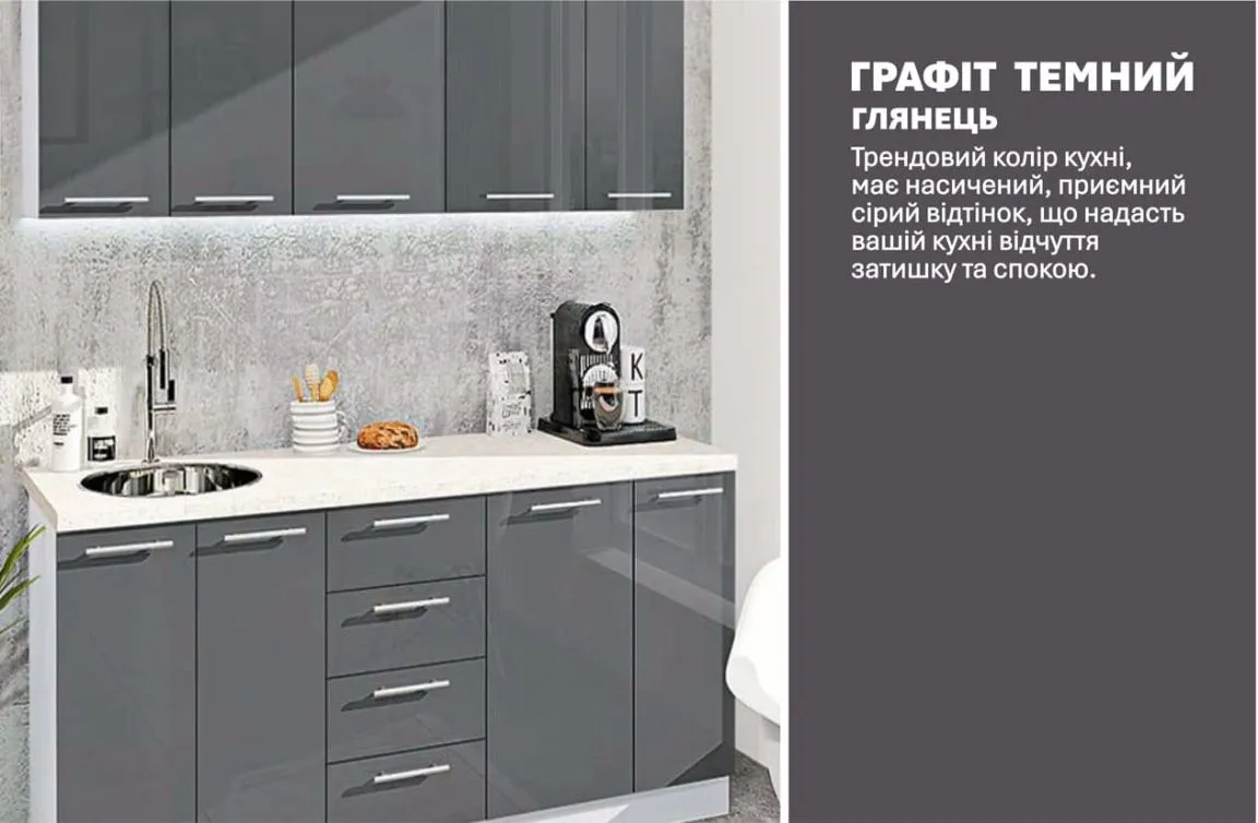 Готова кухня Комфорт Фарбований високий глянець 1700мм Графіт