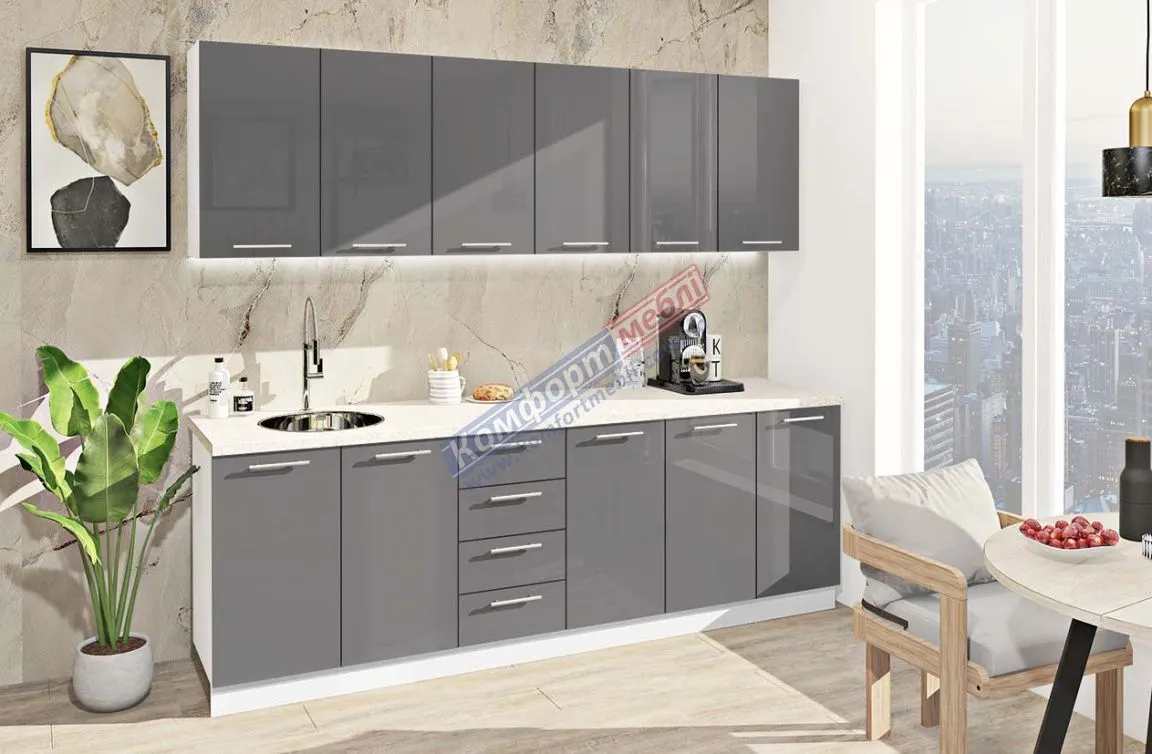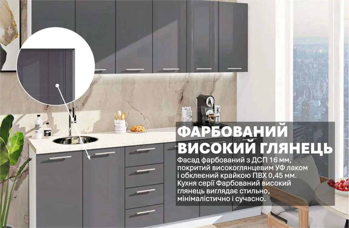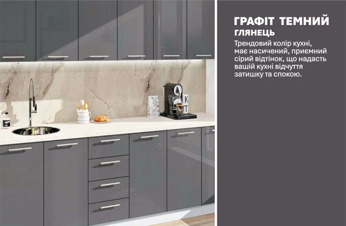 Готова кухня Комфорт Фарбований високий глянець 2.4 м Графіт