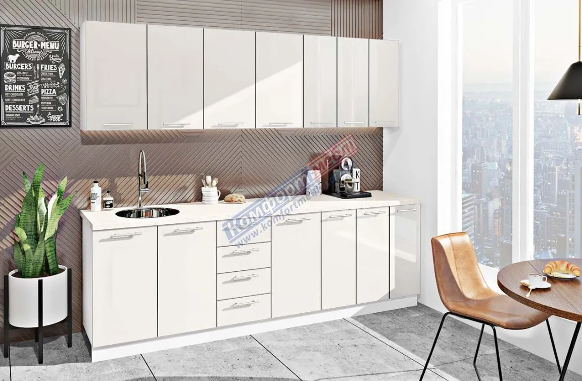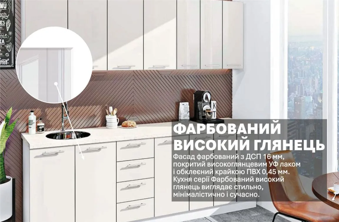 Готова кухня Комфорт Фарбований високий глянець 2.5 метра Білий