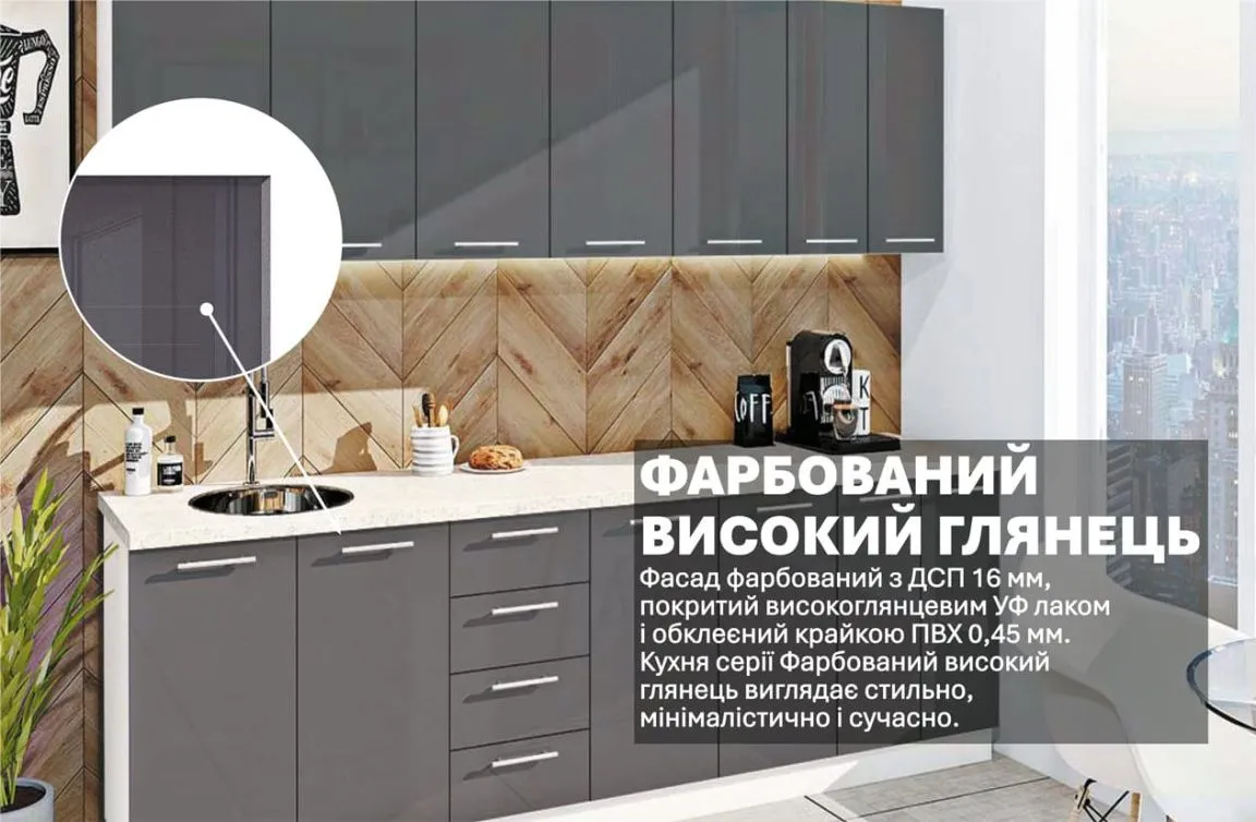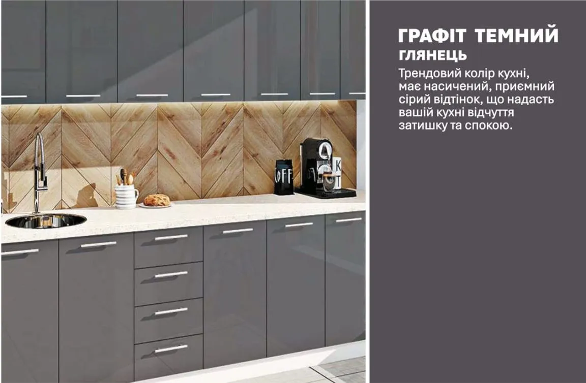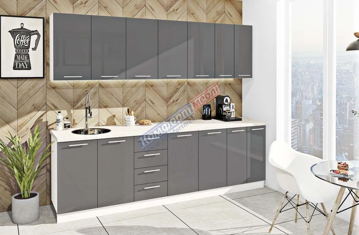 Готова кухня Комфорт Фарбований високий глянець 2,6 м Графіт