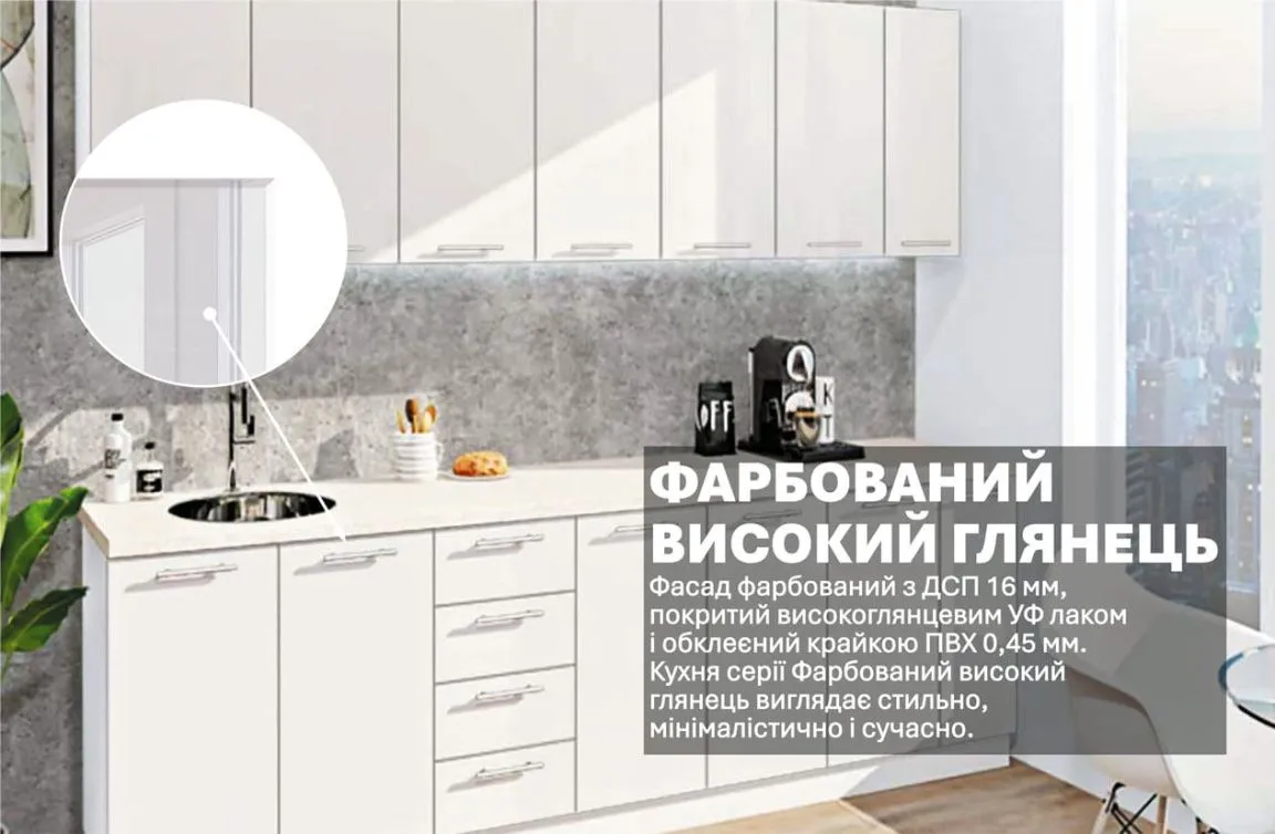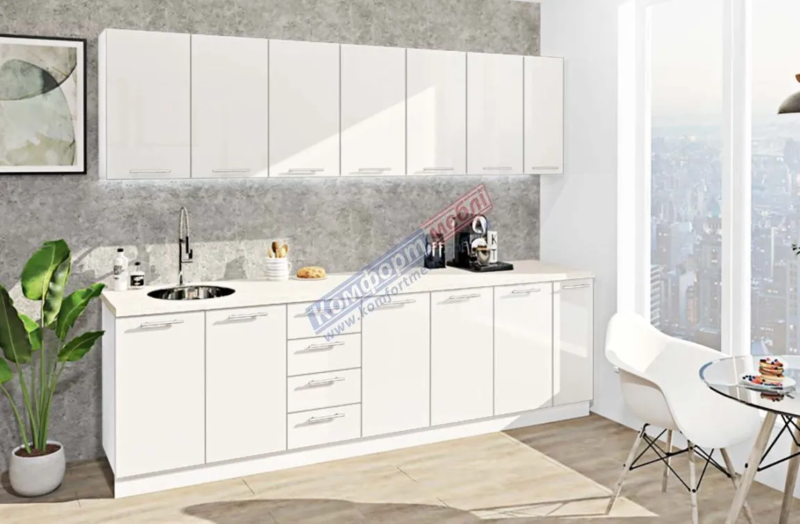 Готова кухня Комфорт Фарбований високий глянець 2,7 метра Білого кольору