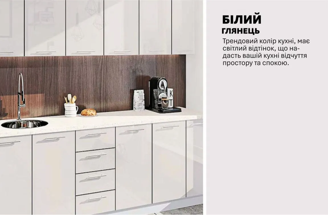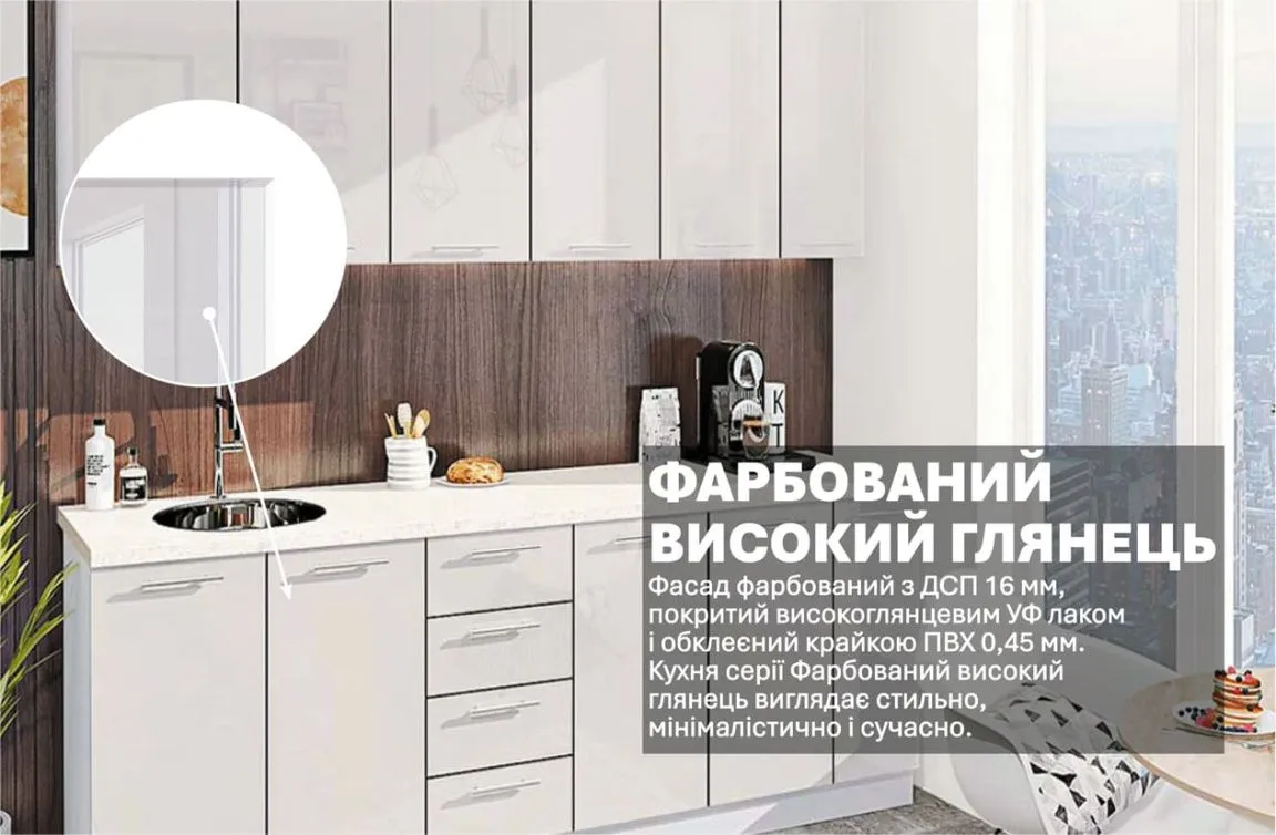 Готова кухня Комфорт Фарбований високий глянець 2300мм Білий