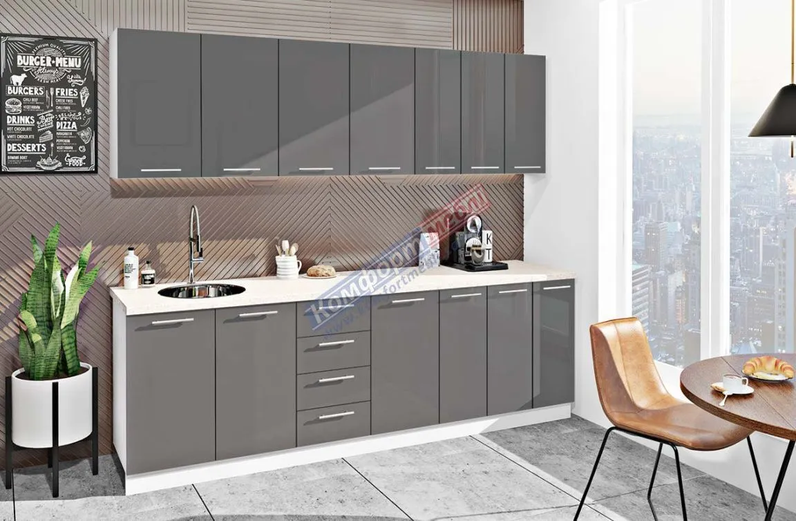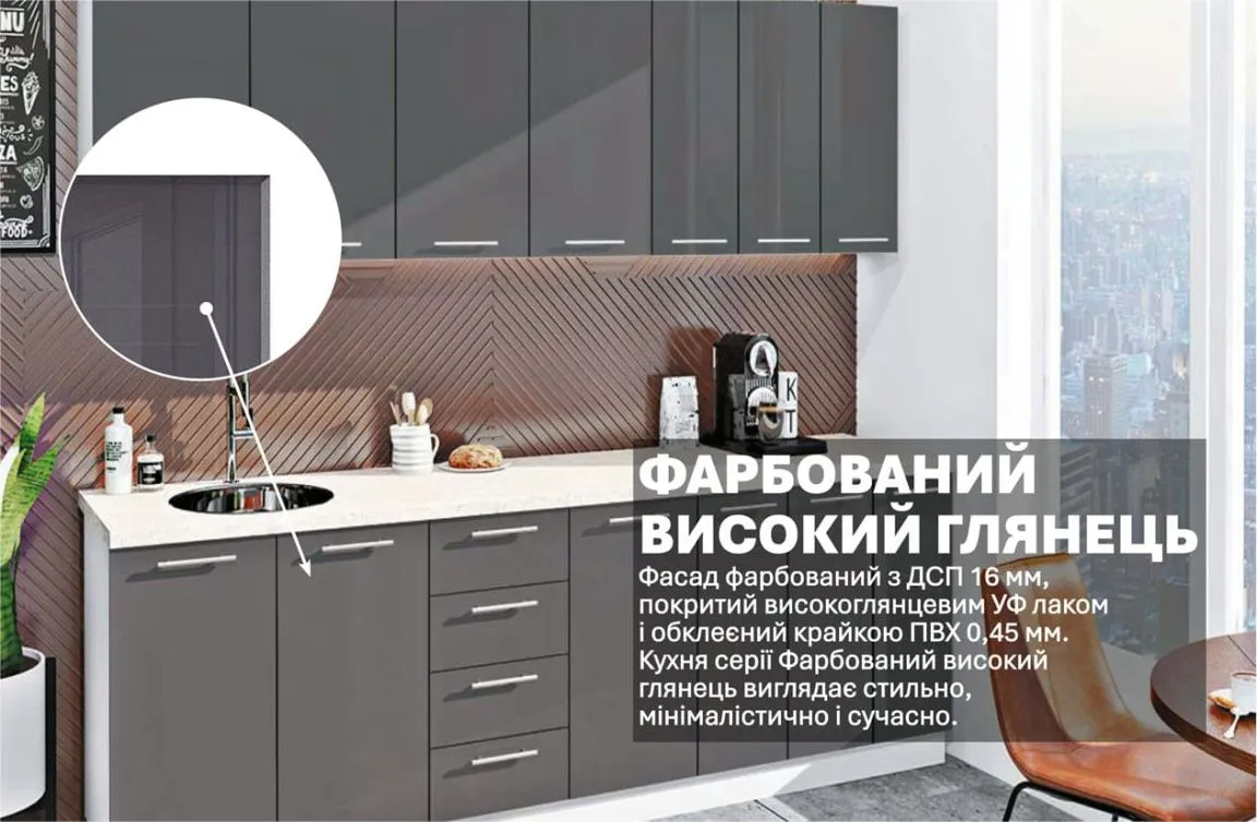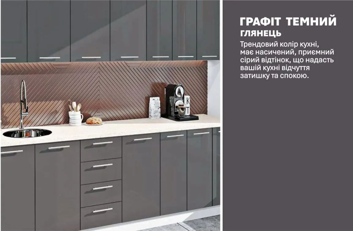 Готова кухня Комфорт Фарбований високий глянець 2500 мм Графіт
