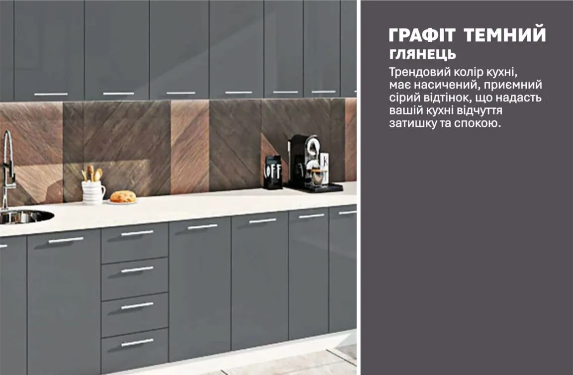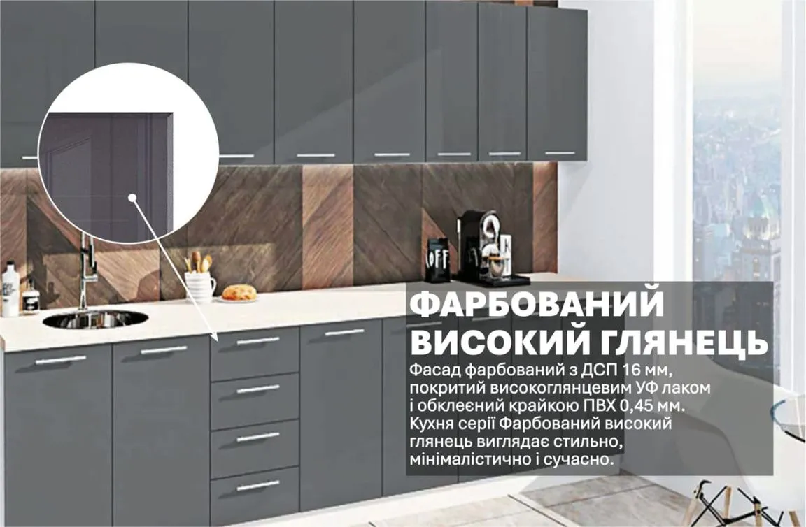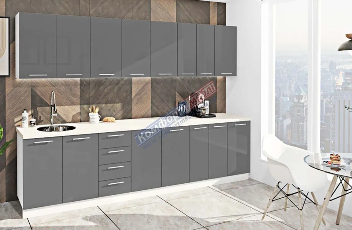Готова кухня Комфорт Фарбований високий глянець 3,0 метра Графіт