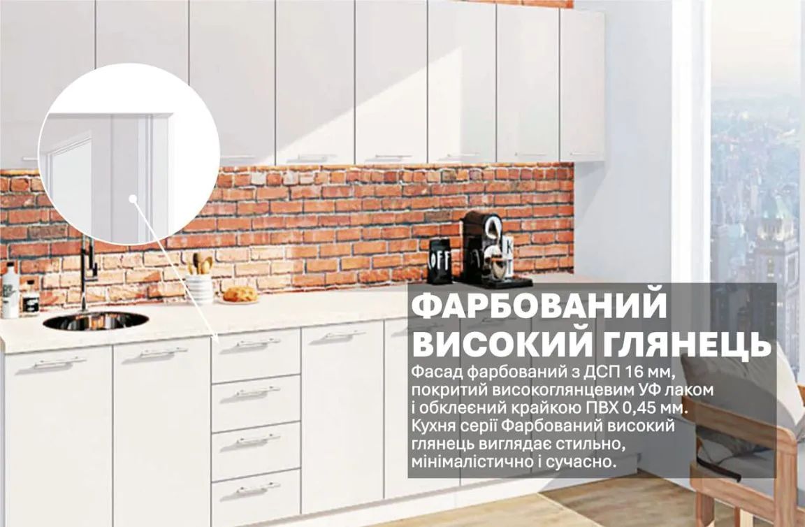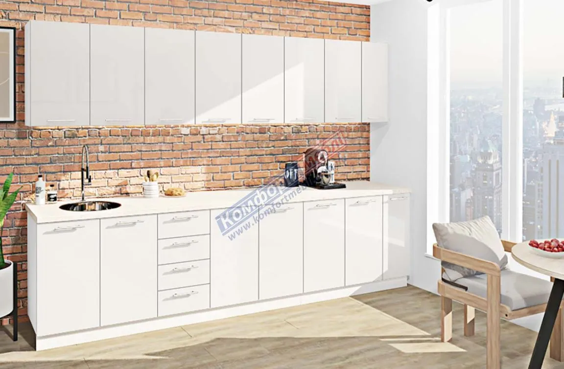 Готова кухня Комфорт Фарбований високий глянець 3.1 метра Білого кольору