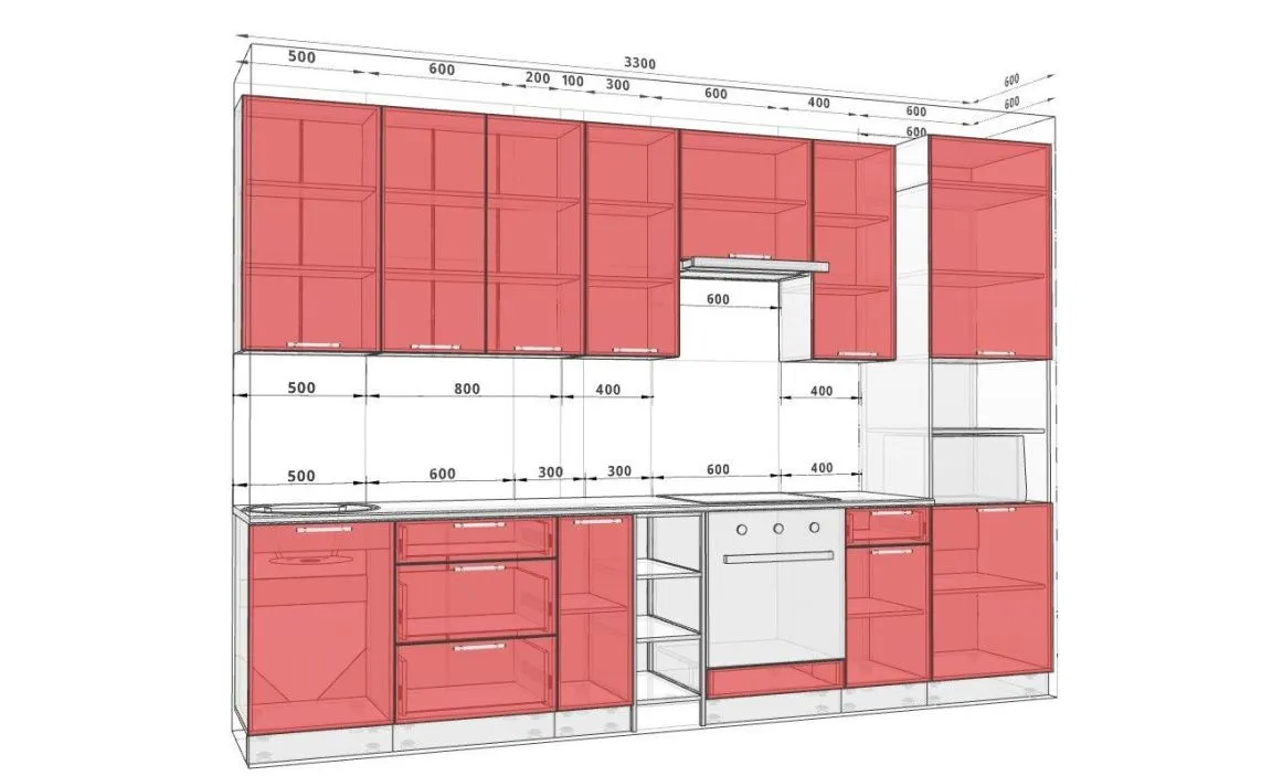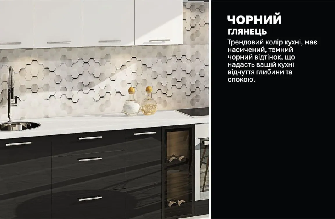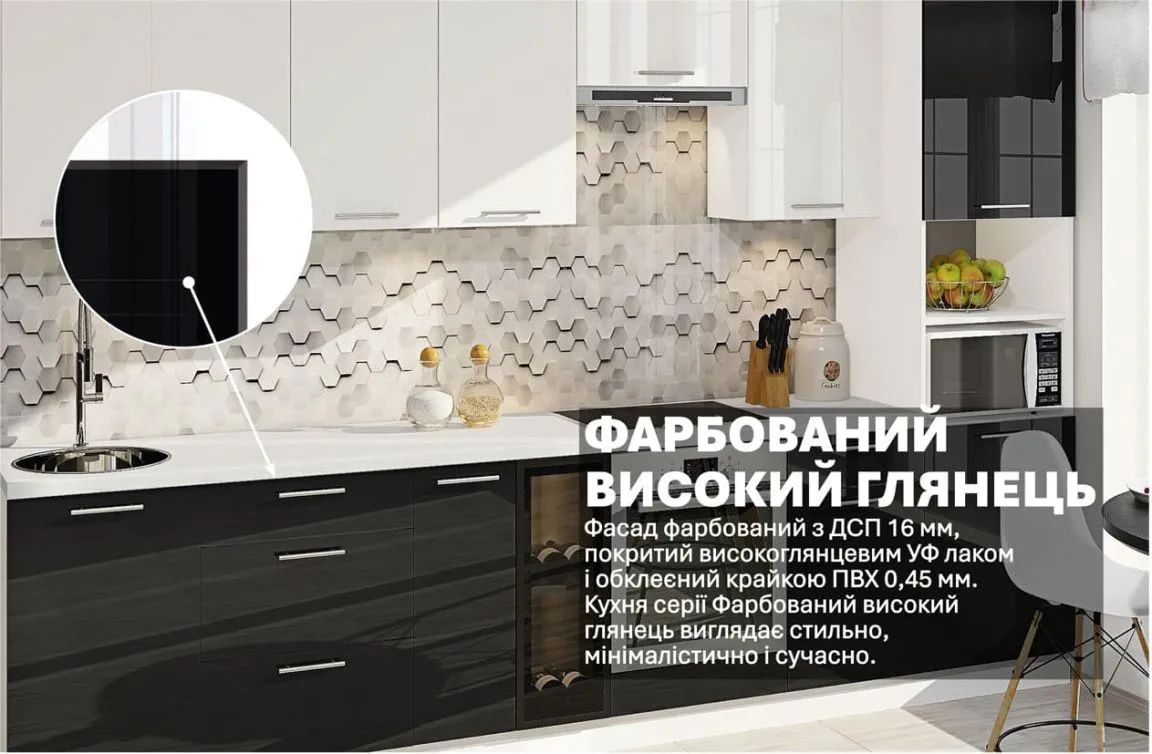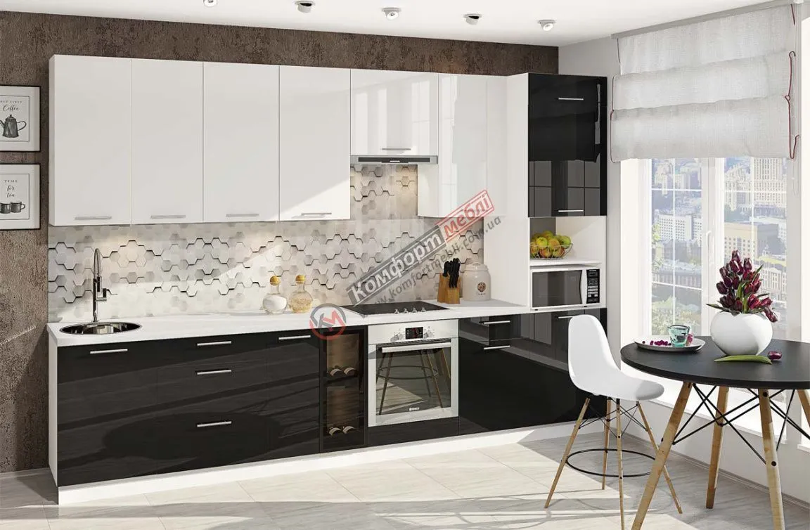Готова кухня Комфорт Фарбований високий глянець 3,3м Білий, Чорний