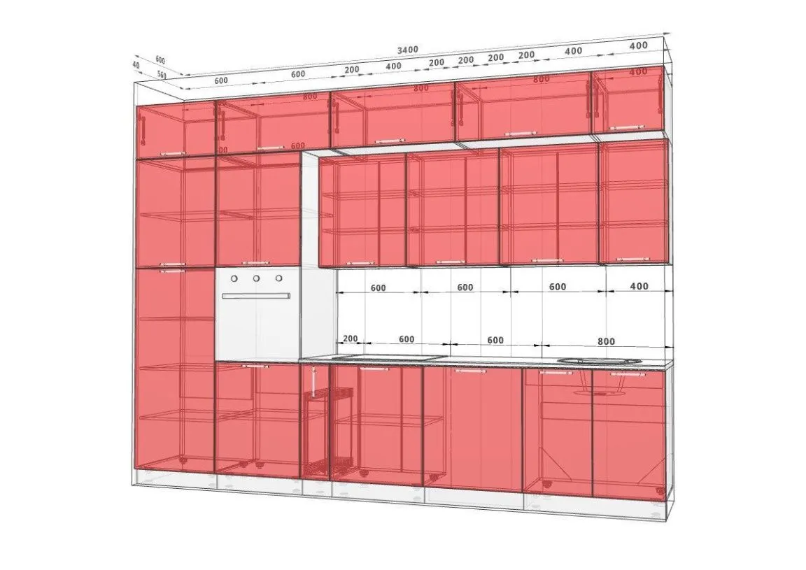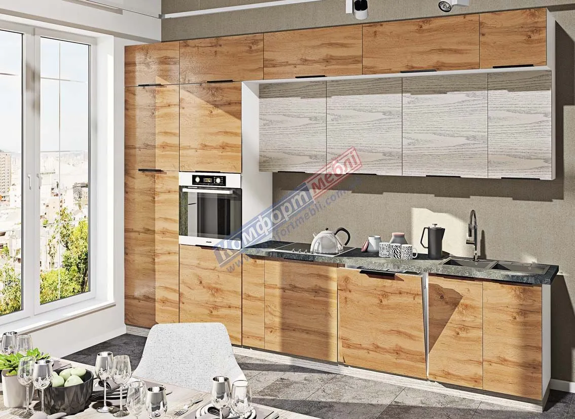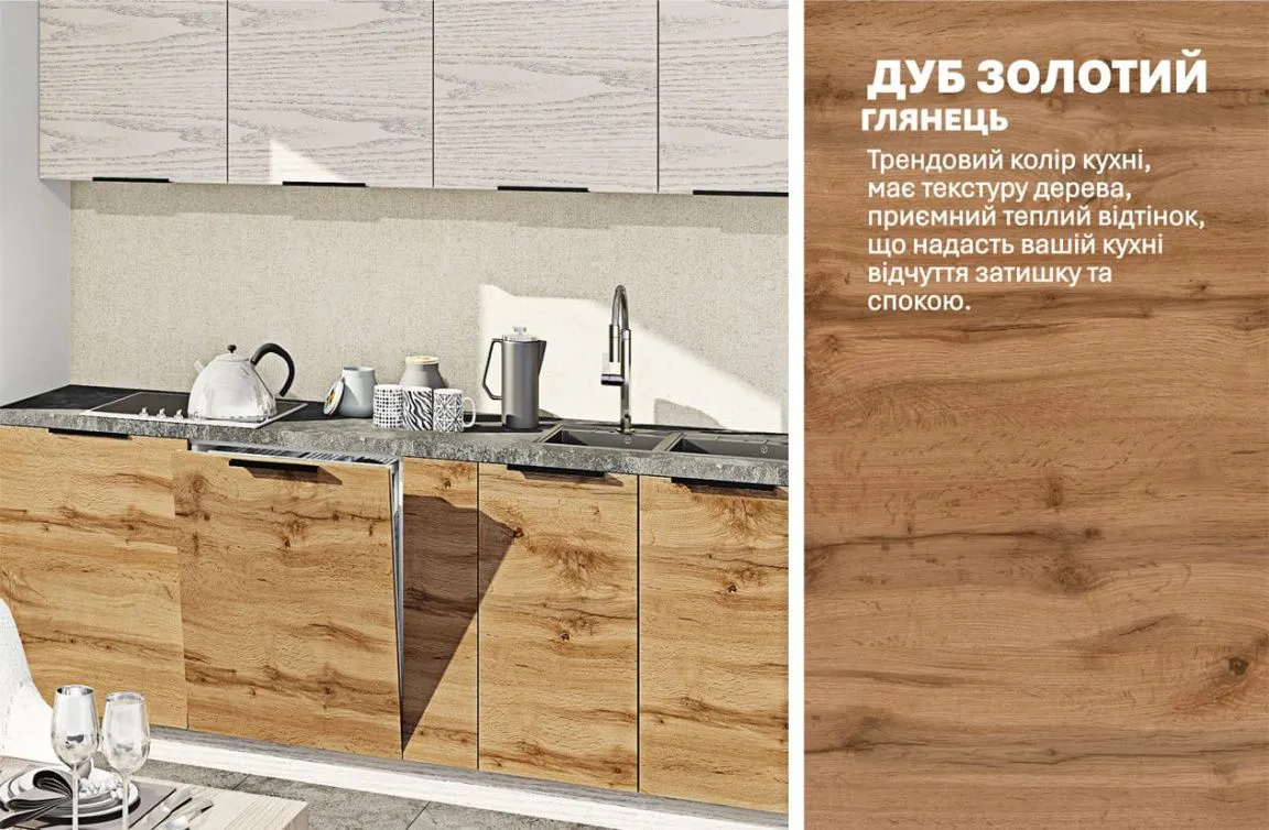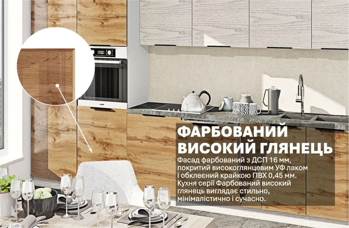 Готова кухня Комфорт Фарбований високий глянець 3.4м Дуб білений, Дуб золотий