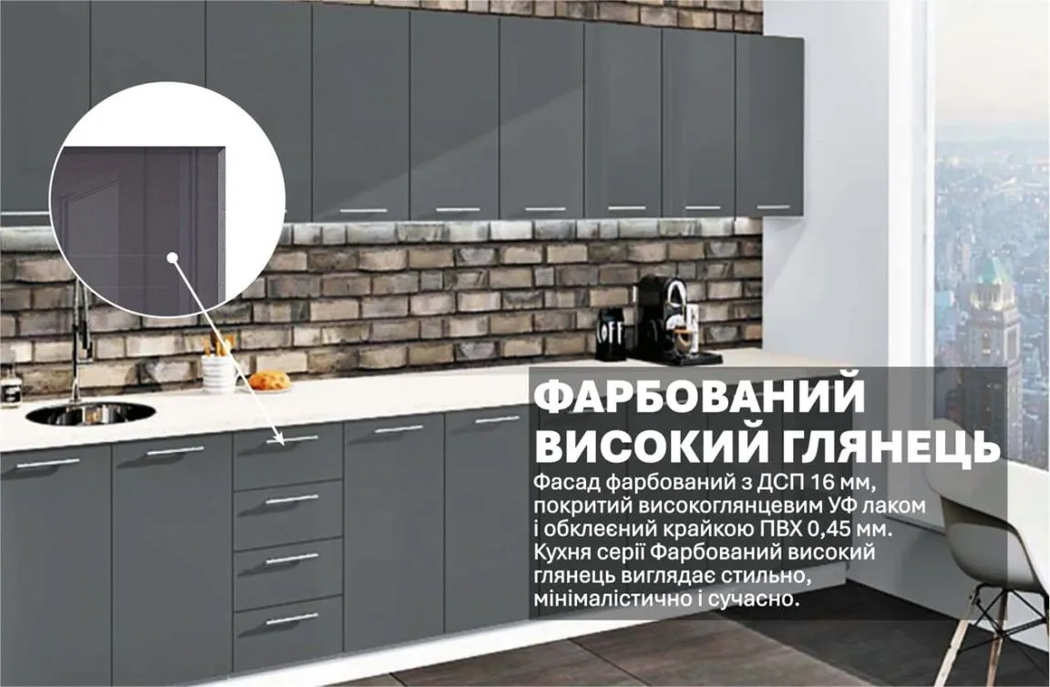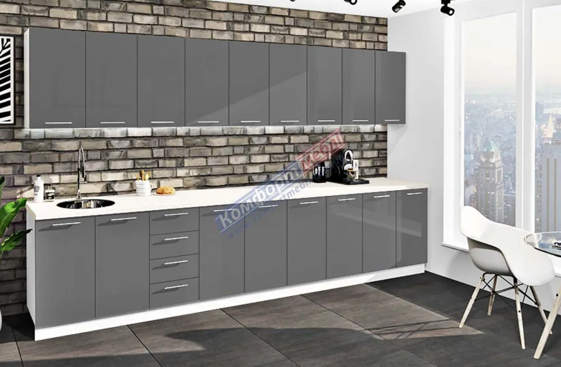 Готова кухня Комфорт Фарбований високий глянець 3.6 метра Графіт