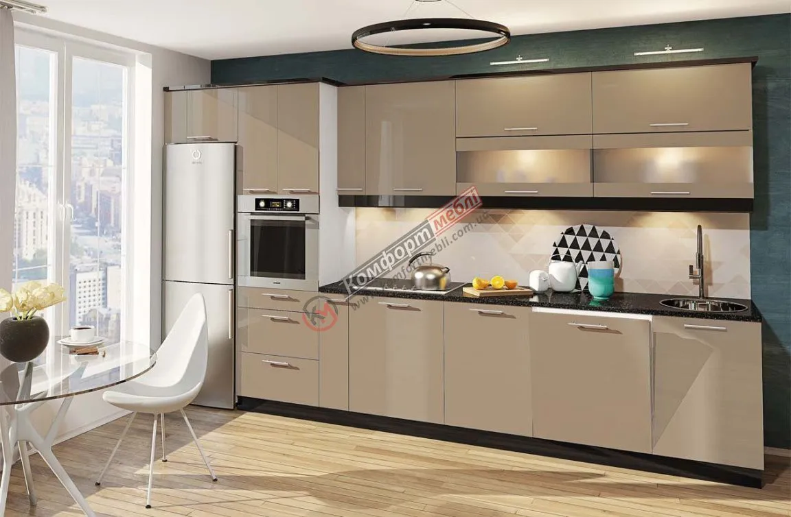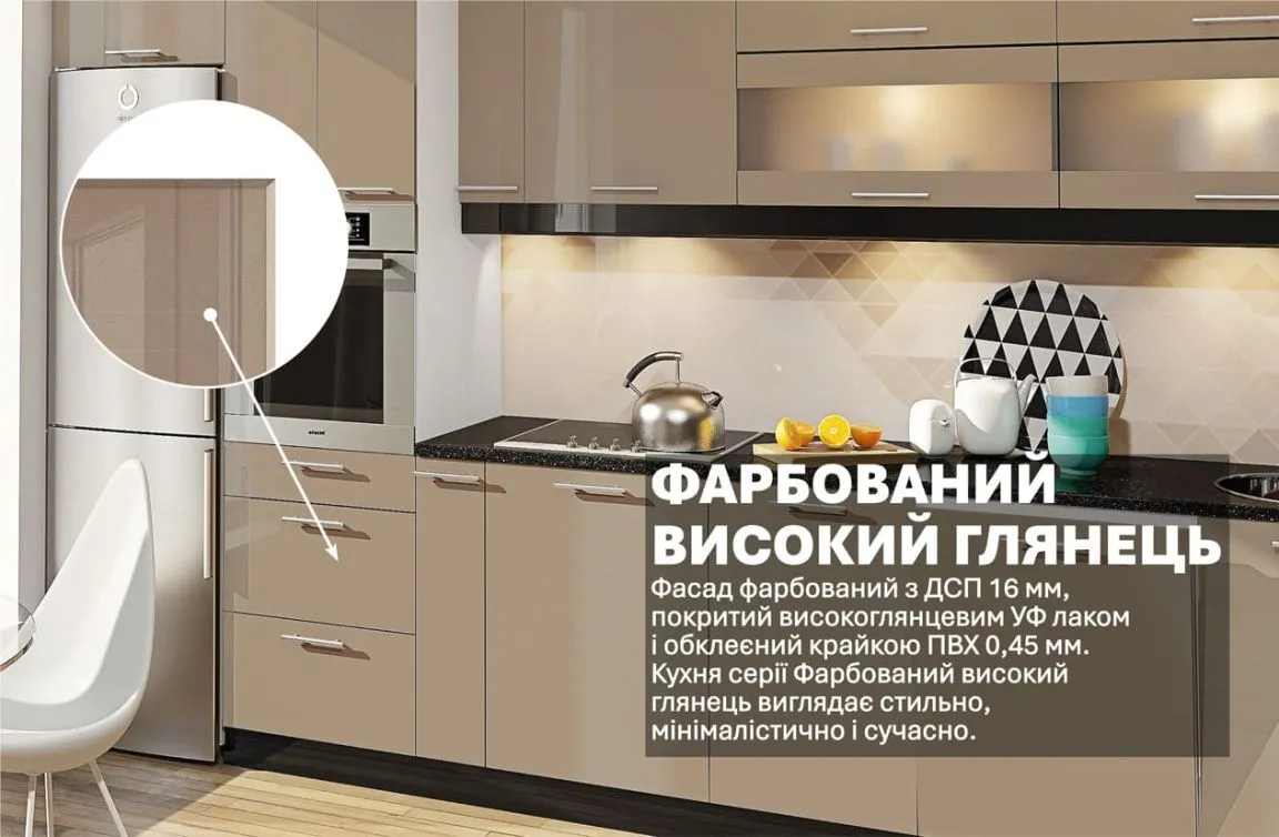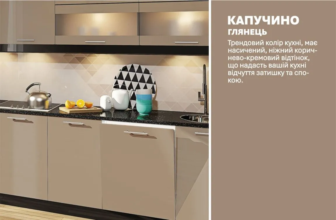 Готова кухня Комфорт Фарбований високий глянець 3,6м Капучіно