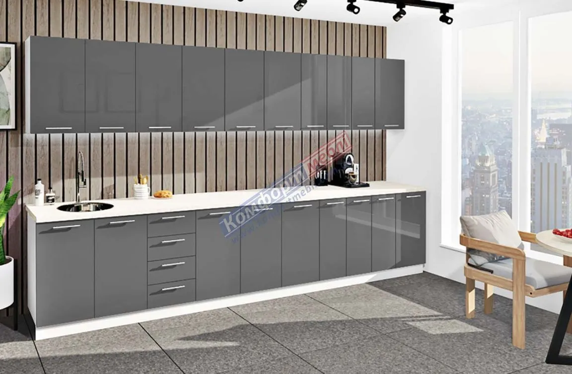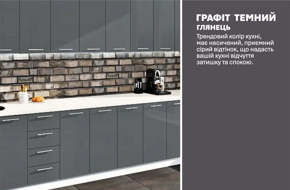 Готова кухня Комфорт Фарбований високий глянець 3,7 м Графіт