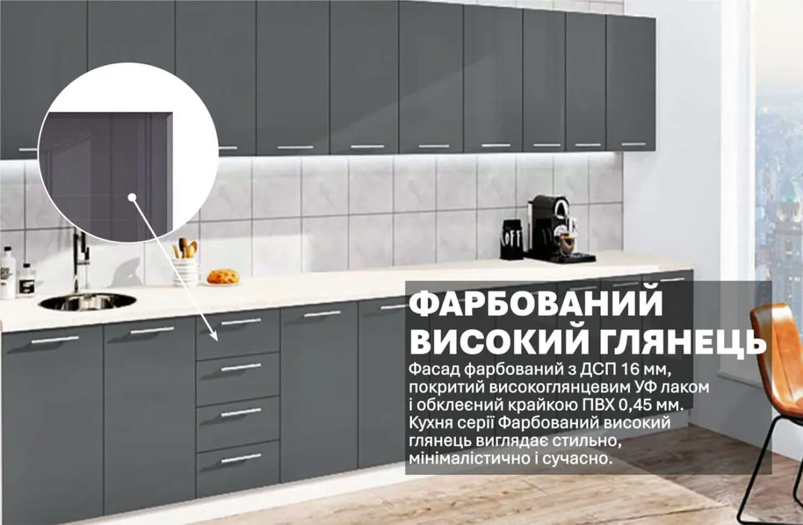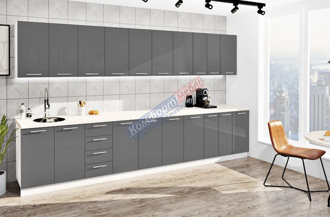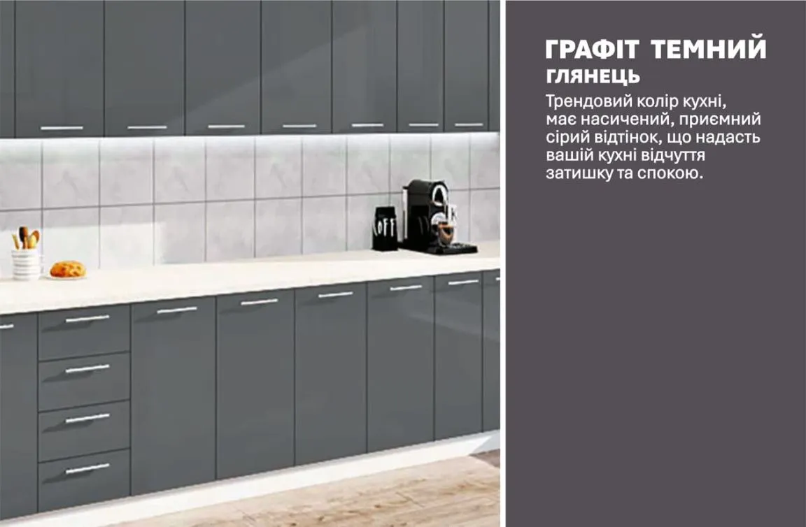 Готова кухня Комфорт Фарбований високий глянець 3,8 метра Графіт