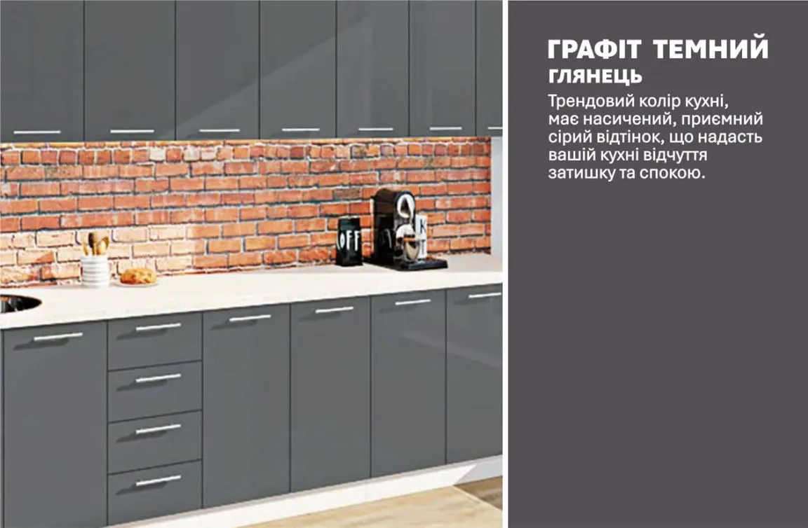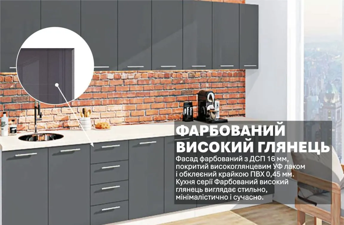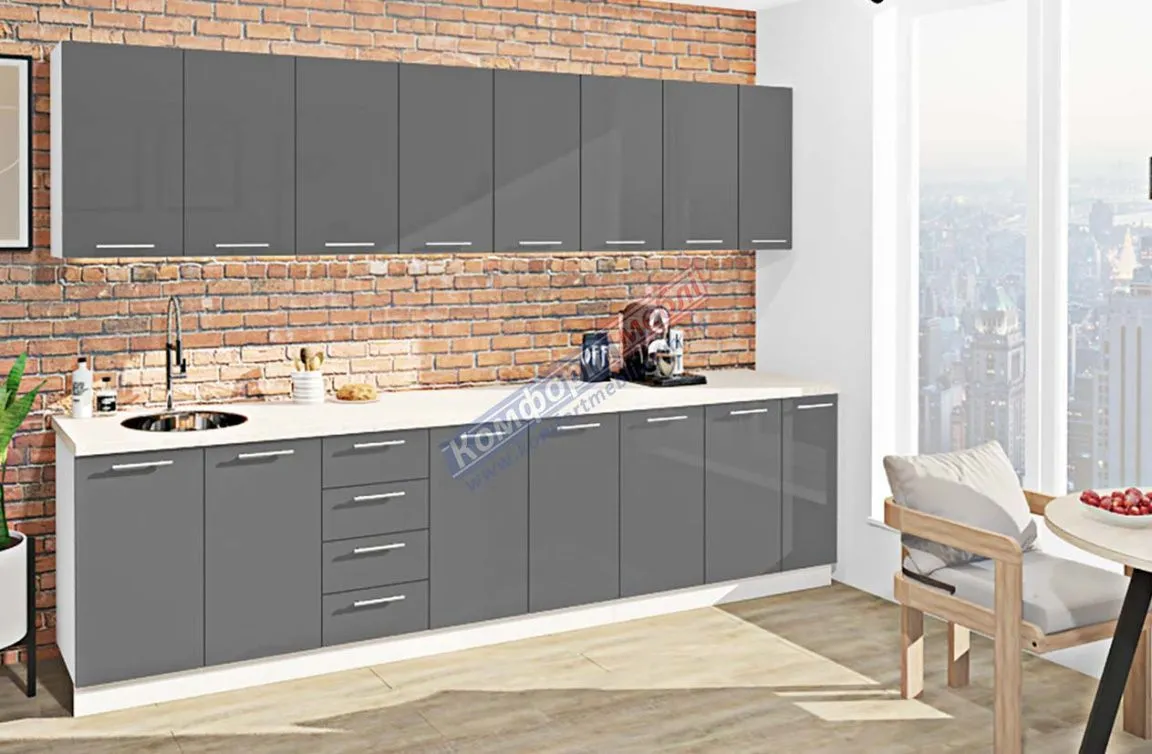 Готова кухня Комфорт Фарбований високий глянець 3100мм Графіт