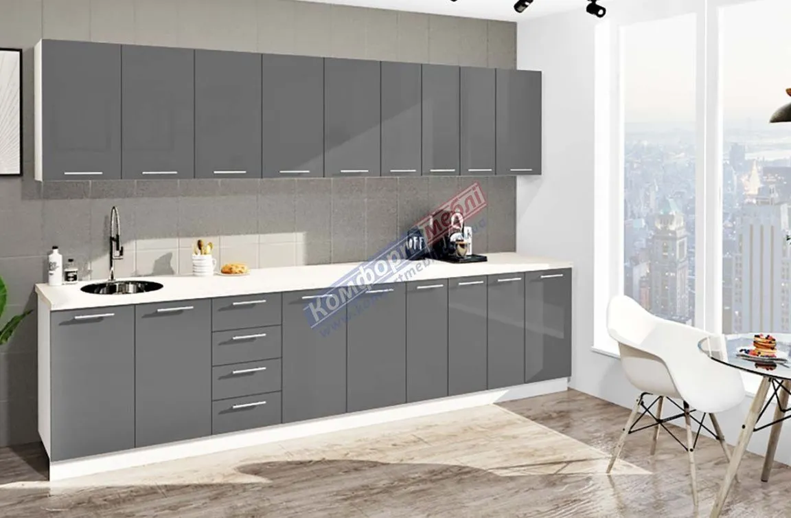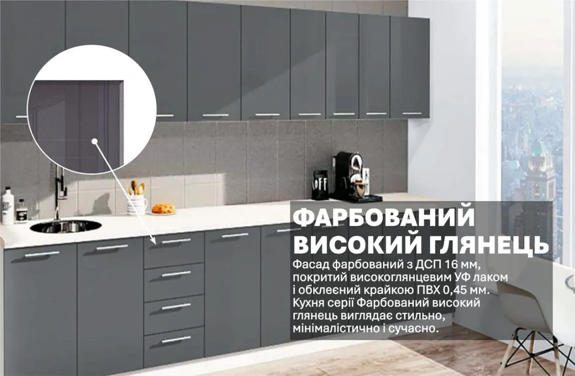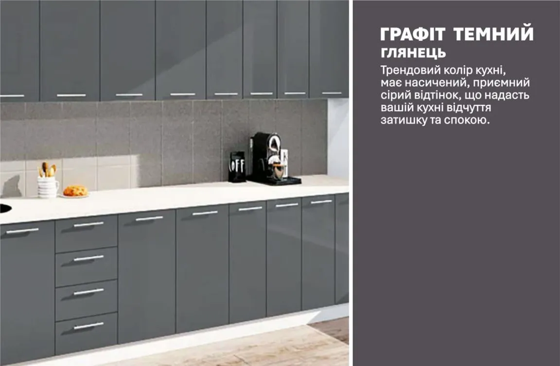 Готова кухня Комфорт Фарбований високий глянець 330см Графіт