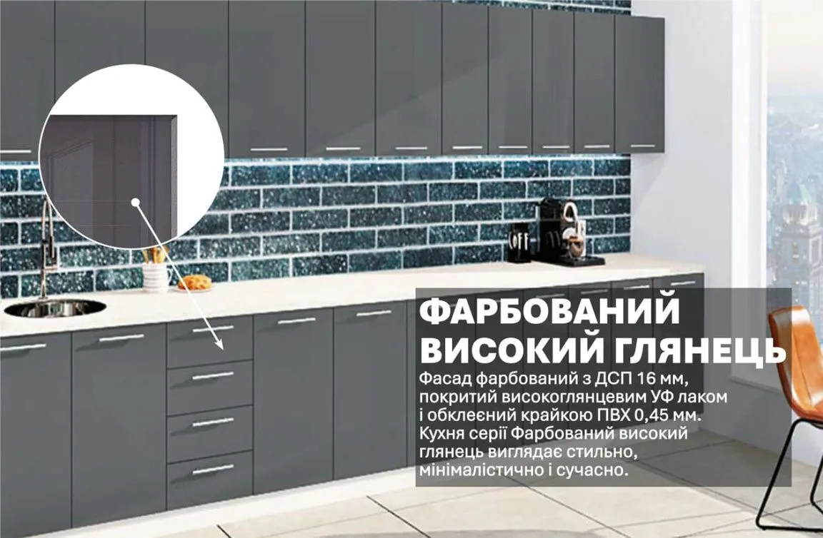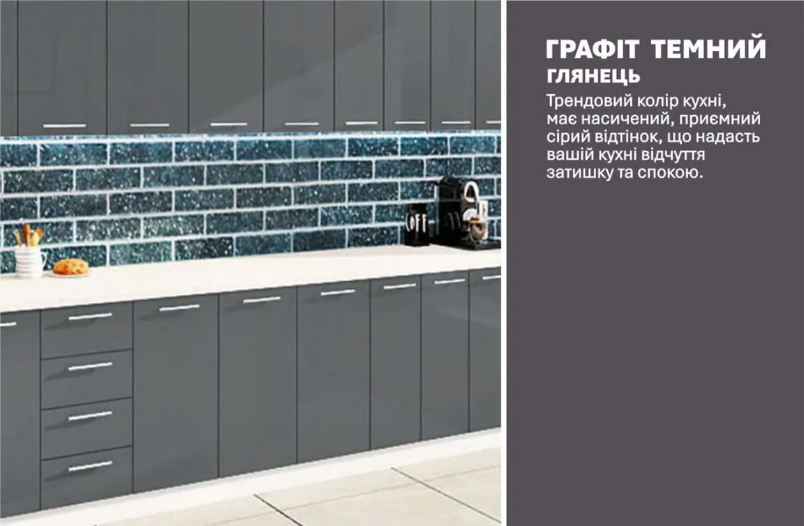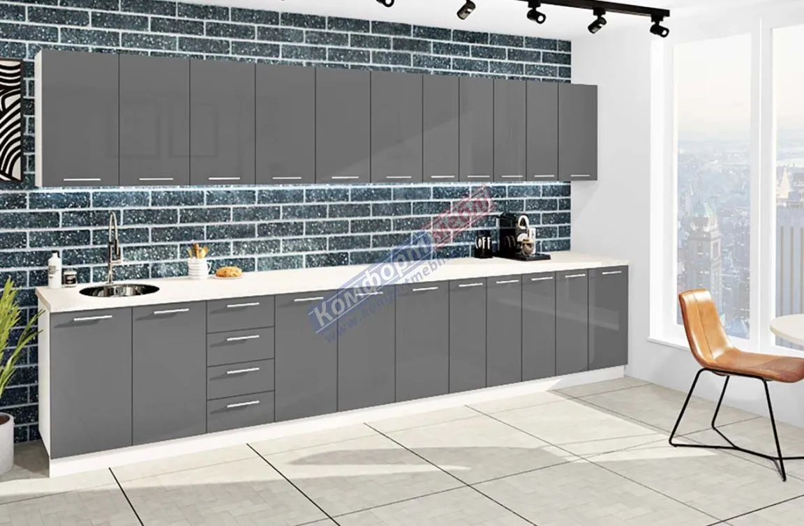 Готова кухня Комфорт Фарбований високий глянець 4,0 м Графіт