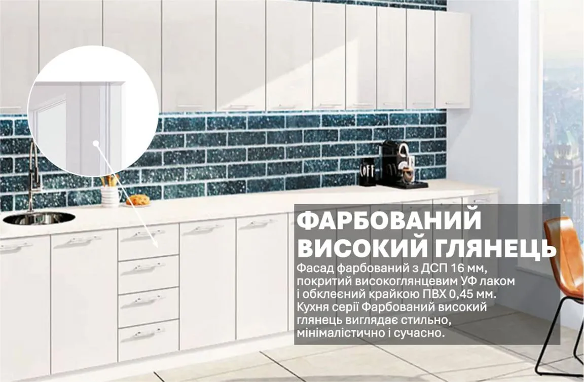 Готова кухня Комфорт Фарбований високий глянець 4000м Білий