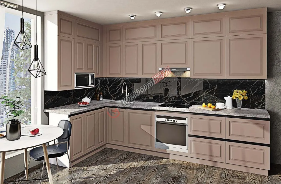 Готова кухня Комфорт "Gola ручка" 330х180см угловая с фасадами "Диамант" Лате