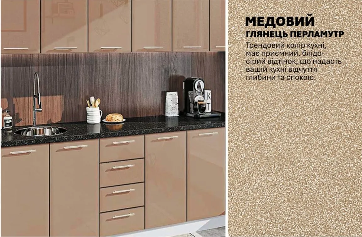 Готова кухня Комфорт Хай-тек 2.3 метра Медовий