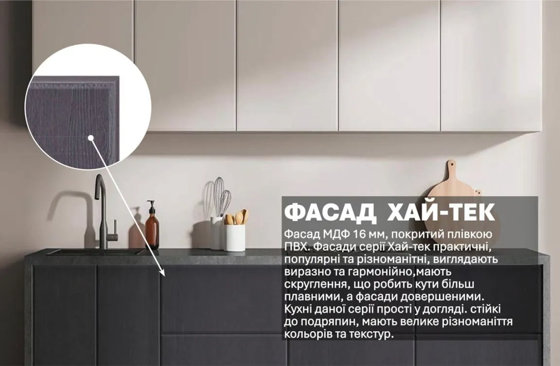 Готова кухня Комфорт Хай-тек 2.4 м Білий, Грифель