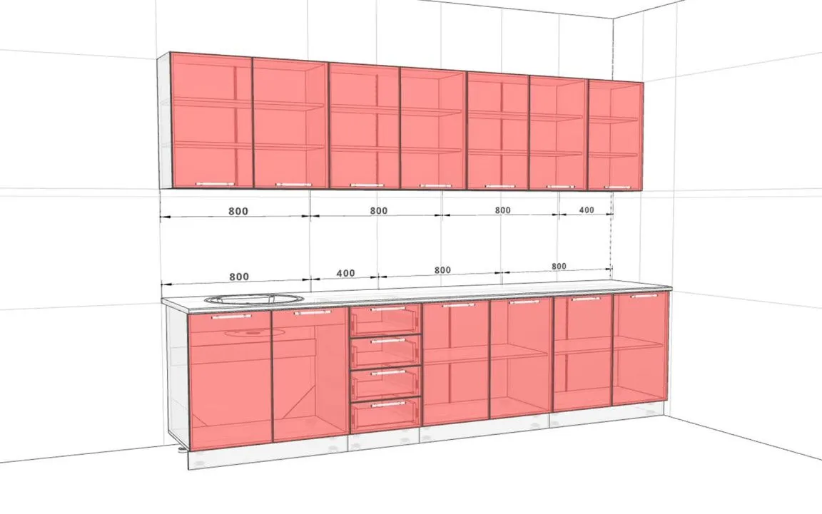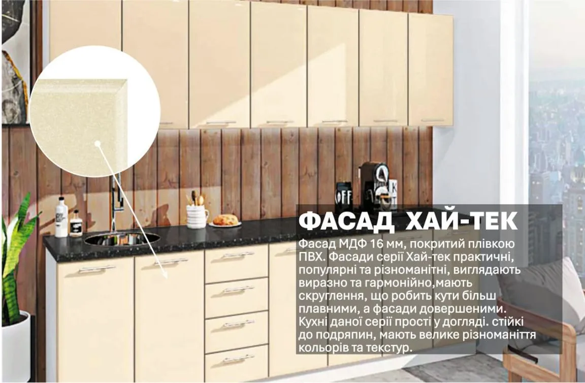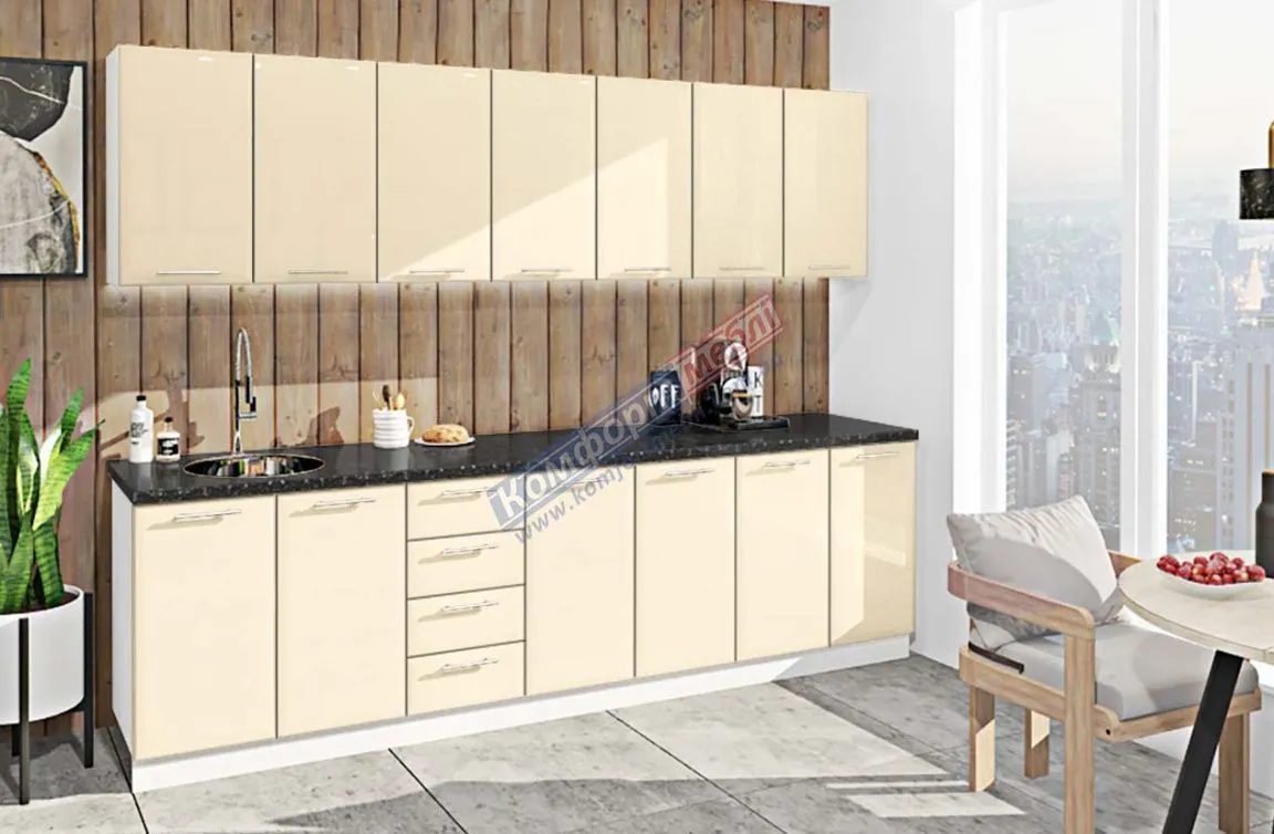 Готова кухня Комфорт Хай-тек 2.8 метра Крем