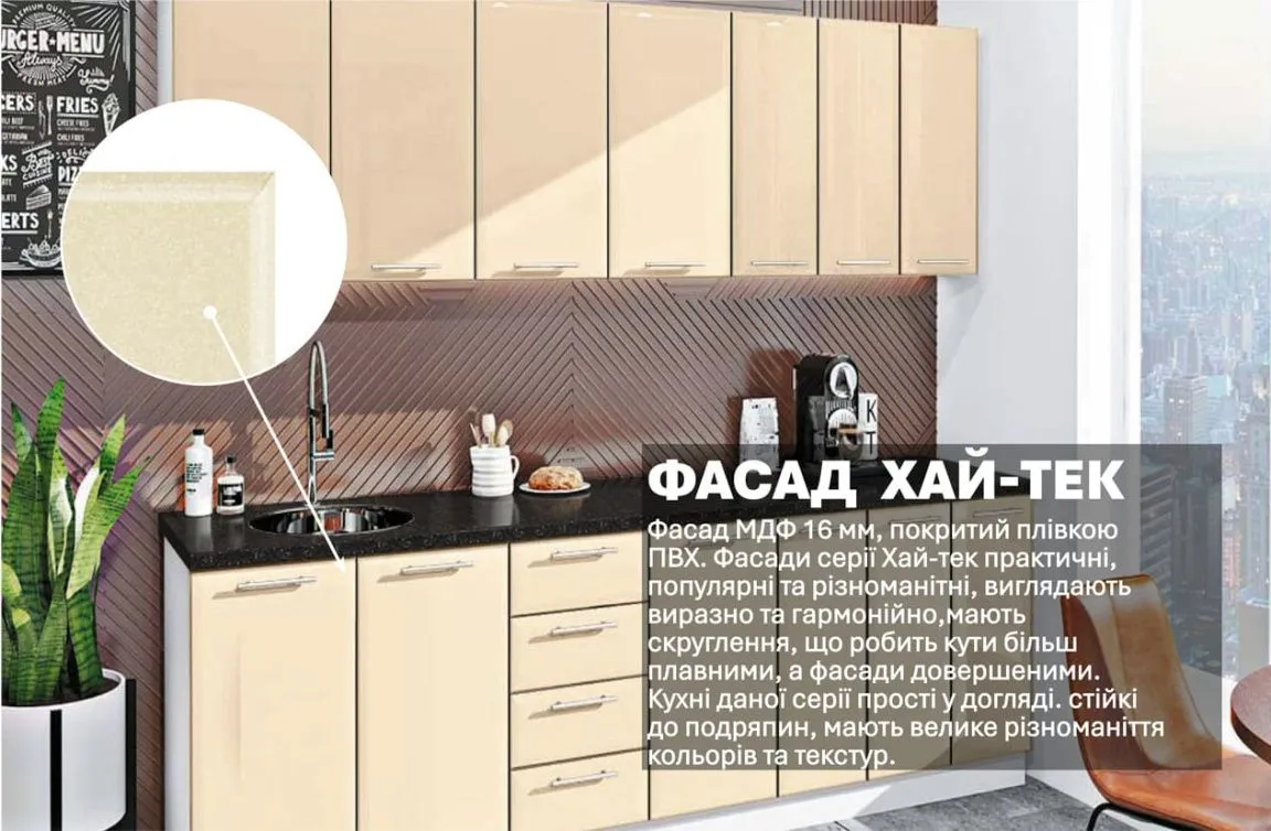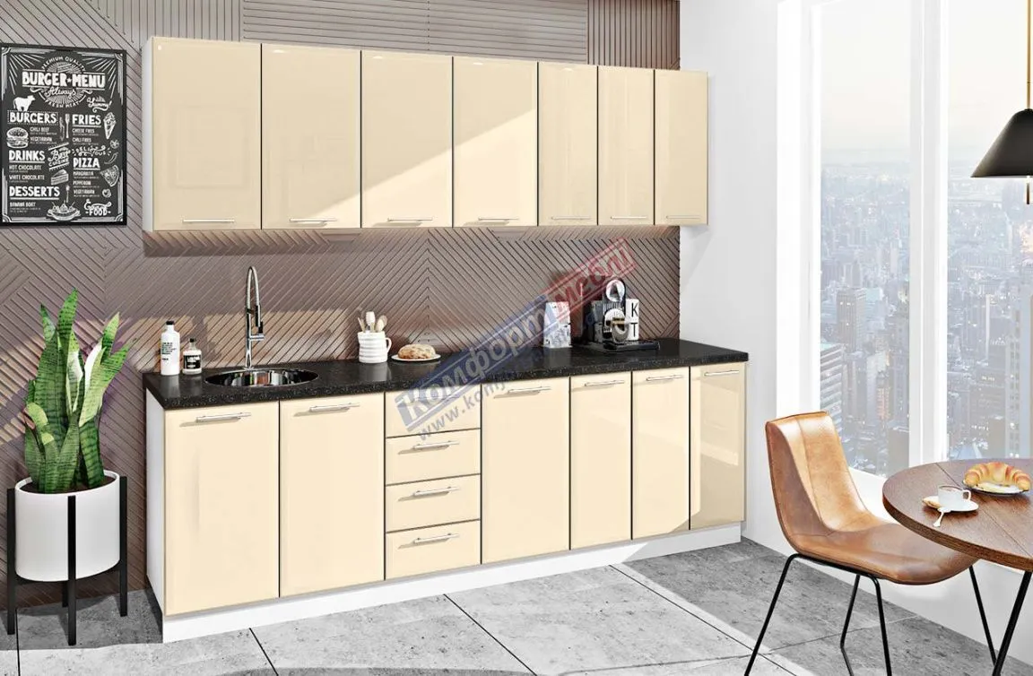Готова кухня Комфорт Хай-тек 2500 мм Крем