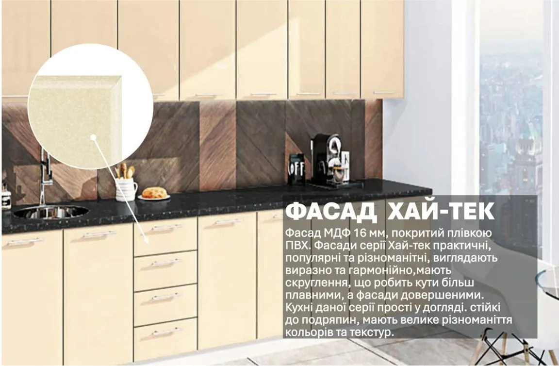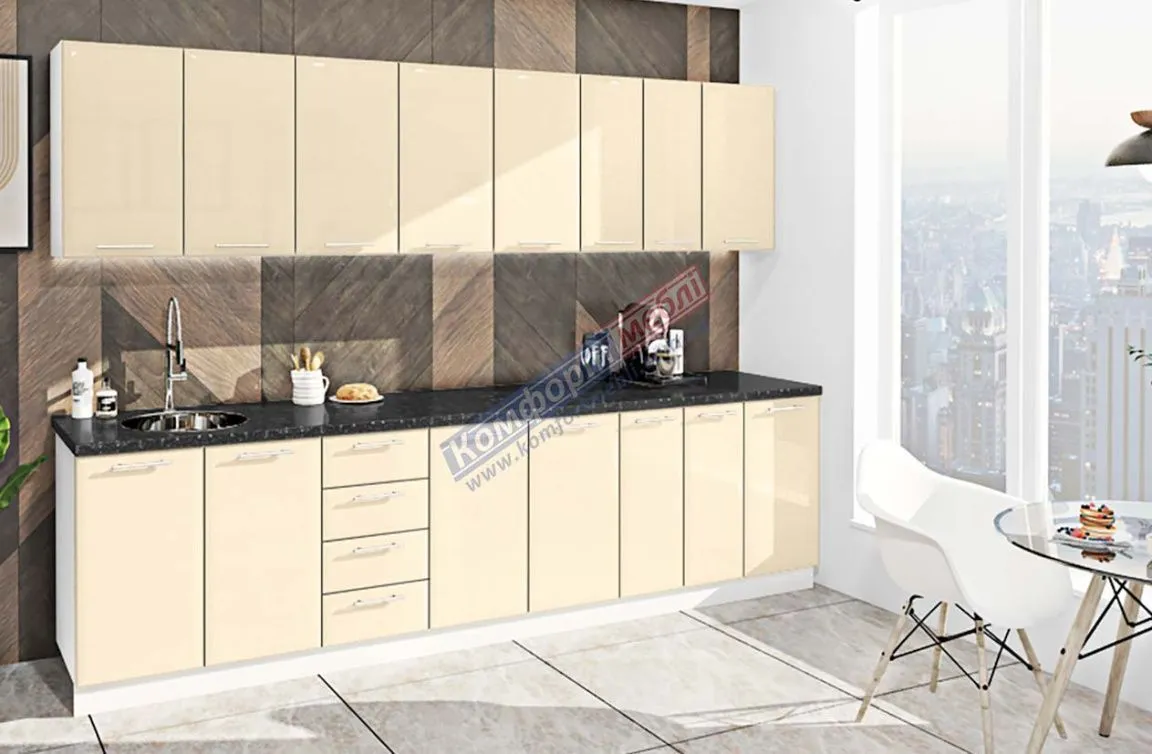 Готова кухня Комфорт Хай-тек 3,0 м Крем