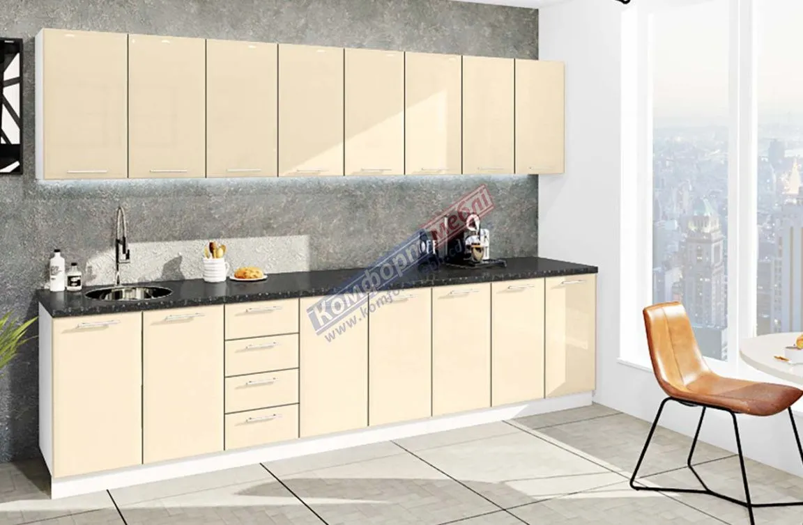 Готова кухня Комфорт Хай-тек 3,2 м Крем