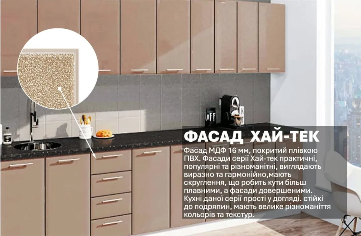 Готова кухня Комфорт Хай-тек 3,3 м Медовий