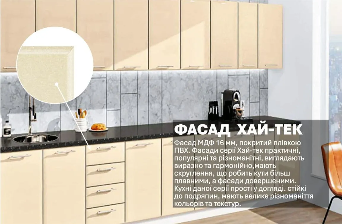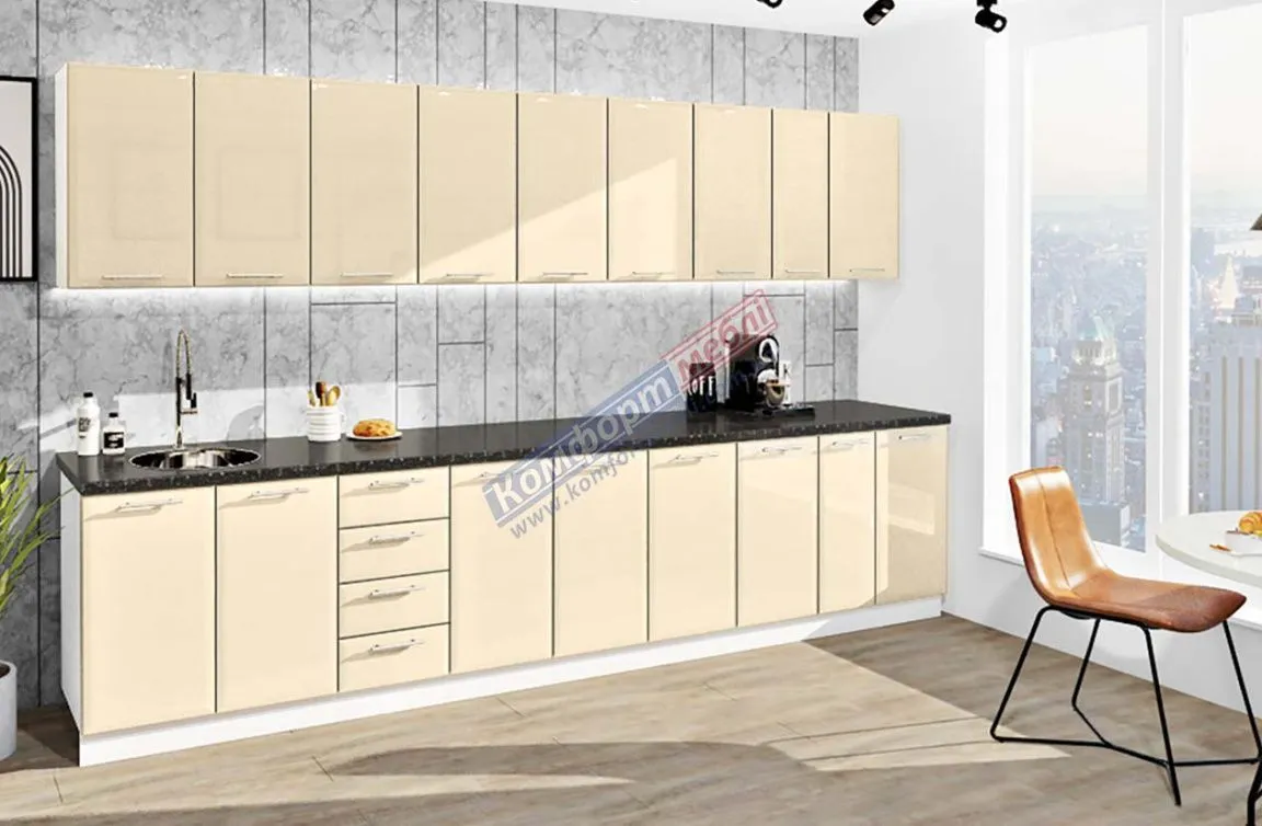 Готова кухня Комфорт Хай-тек 3,5 м Крем