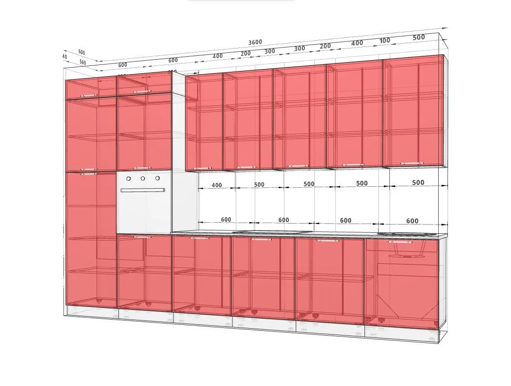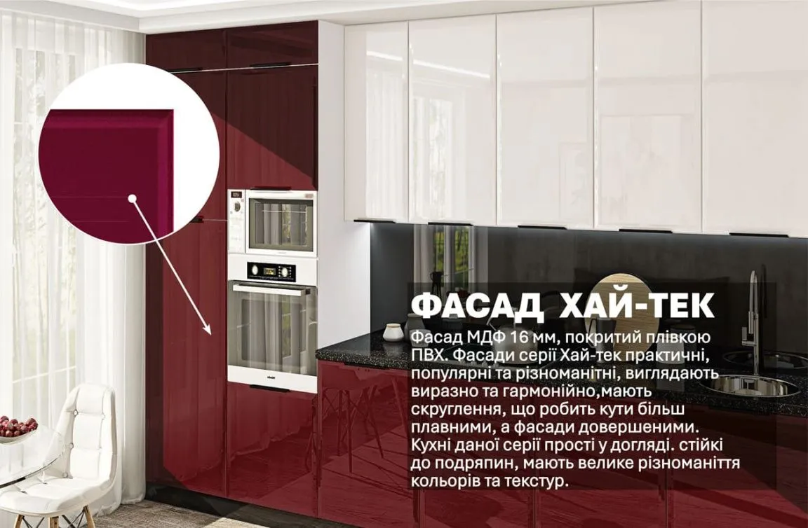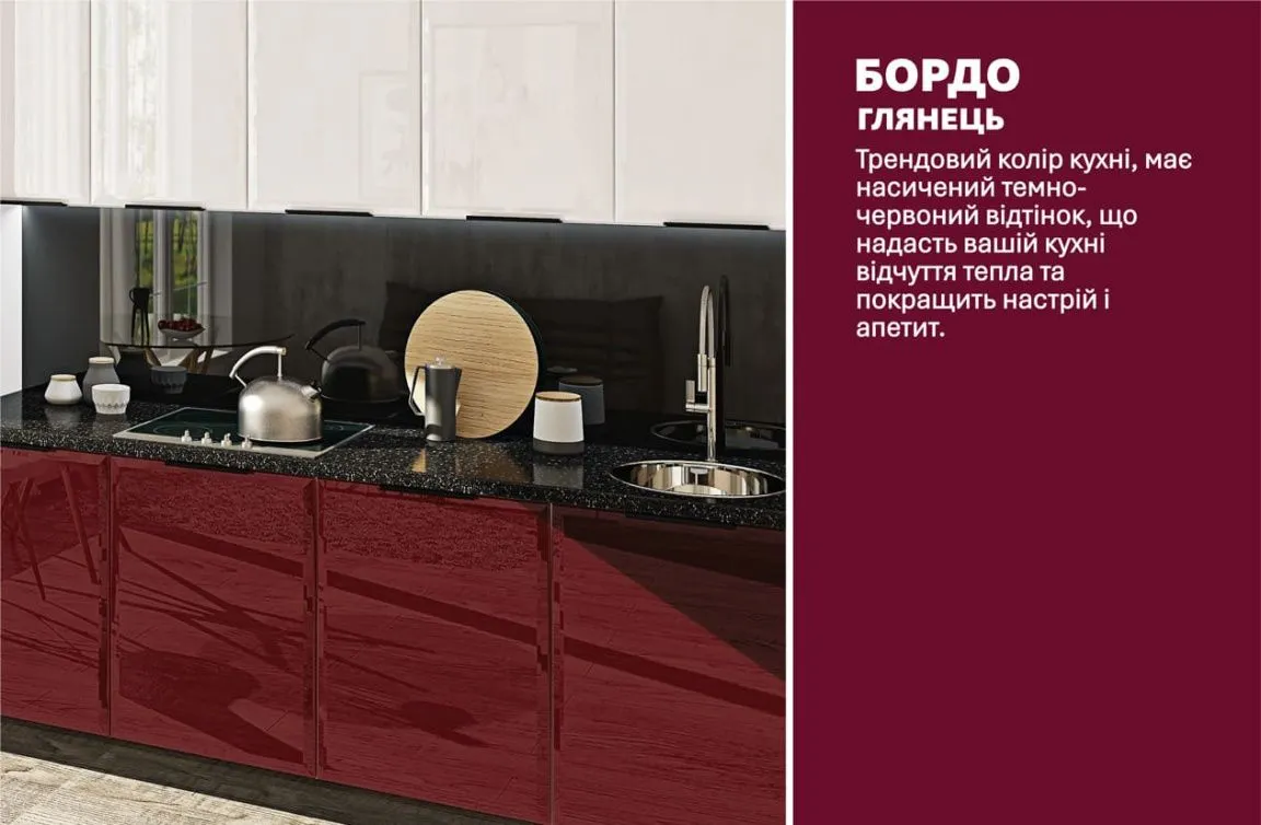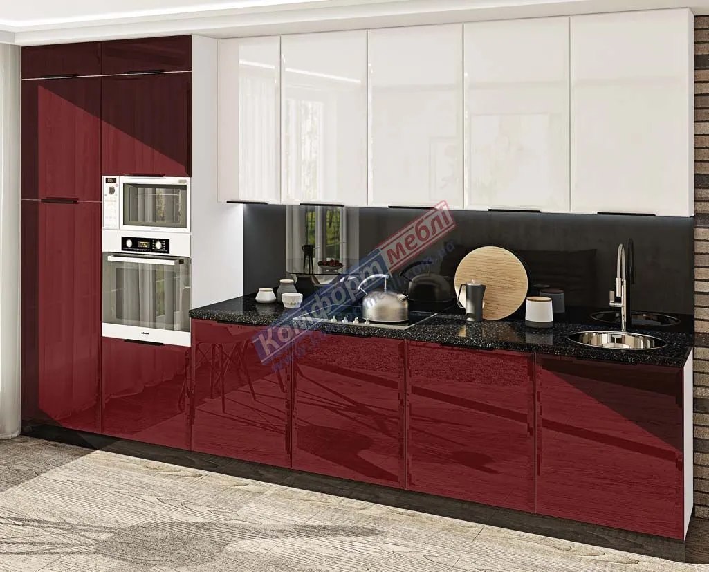 Готова кухня Комфорт Хай-тек 3,6м Білий, Бордо