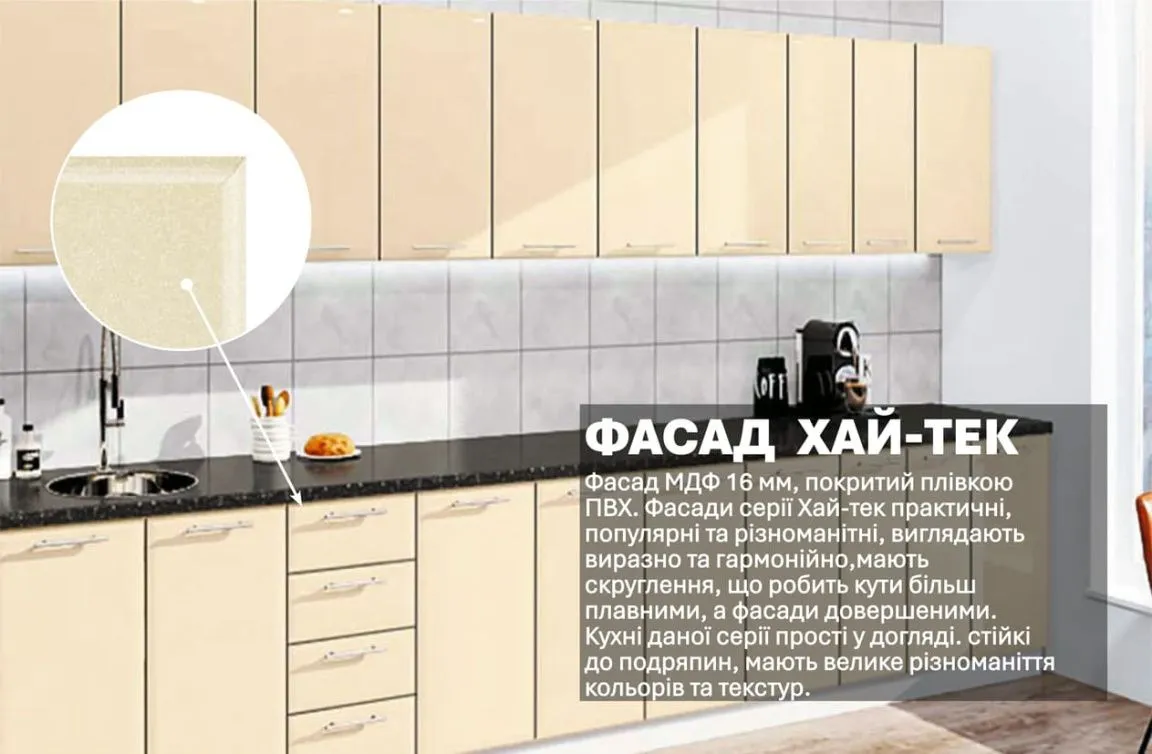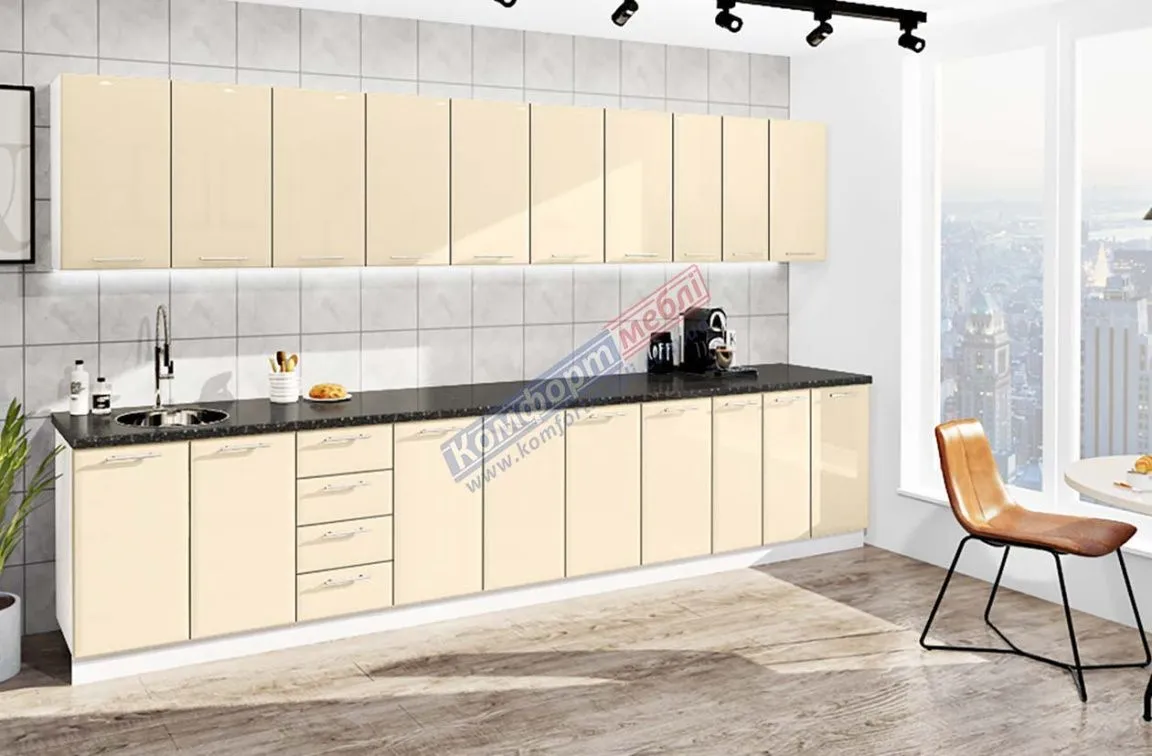 Готова кухня Комфорт Хай-тек 3,8 м Крем