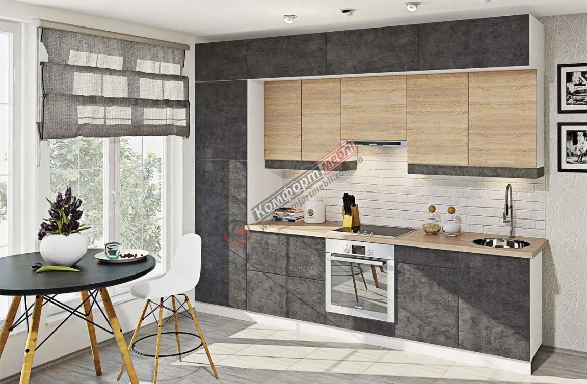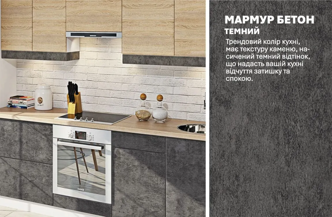 Готова кухня Комфорт Хай-тек 3м Дуб сонома, Мрамор бетон темний