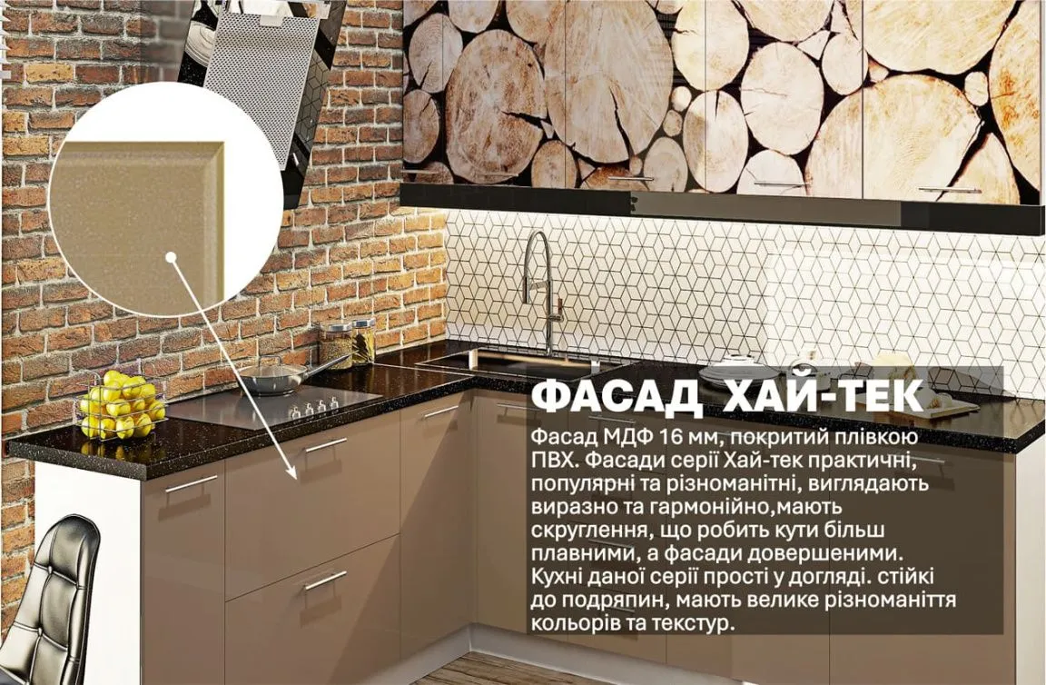 Готова кухня Комфорт Хай-тек з кольоровим друком" 2,6х2,1м кутова Медовий
