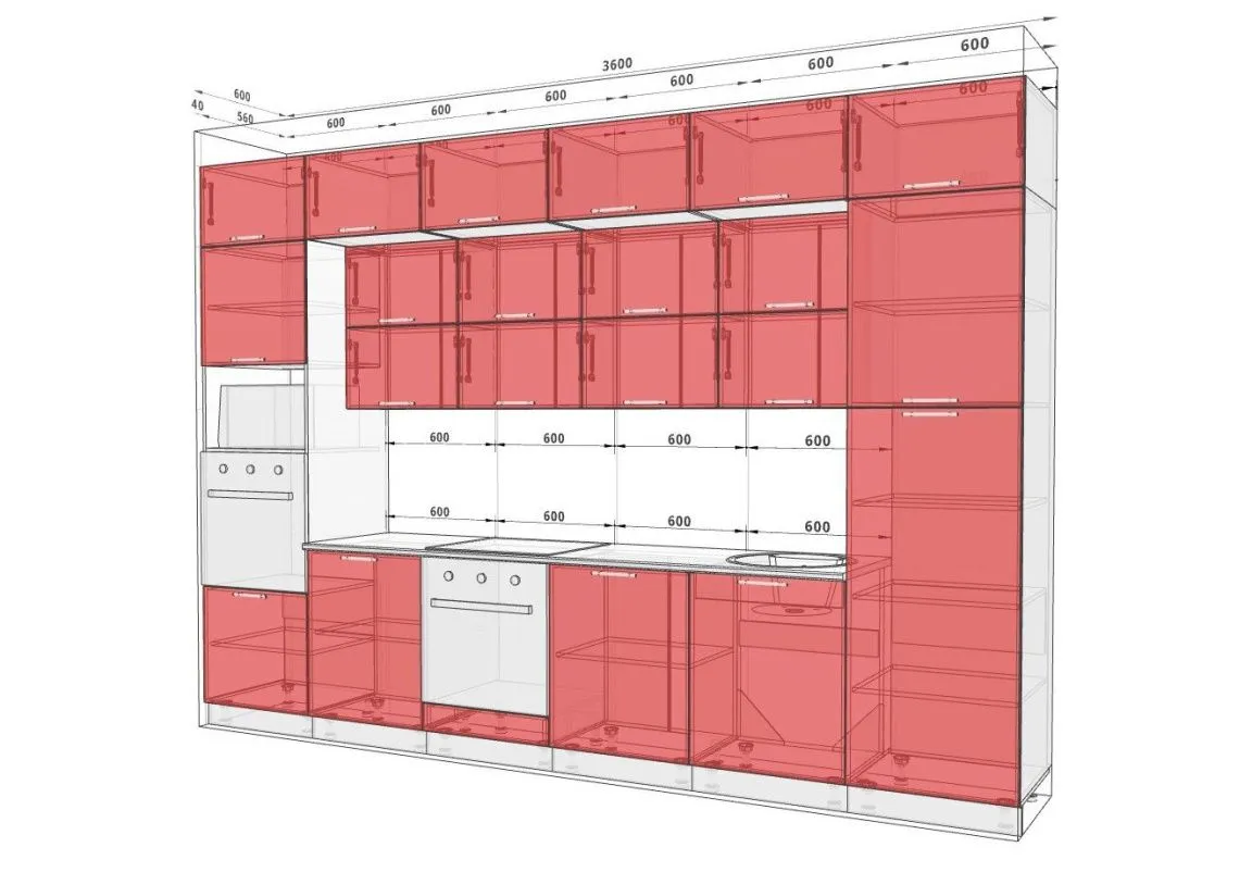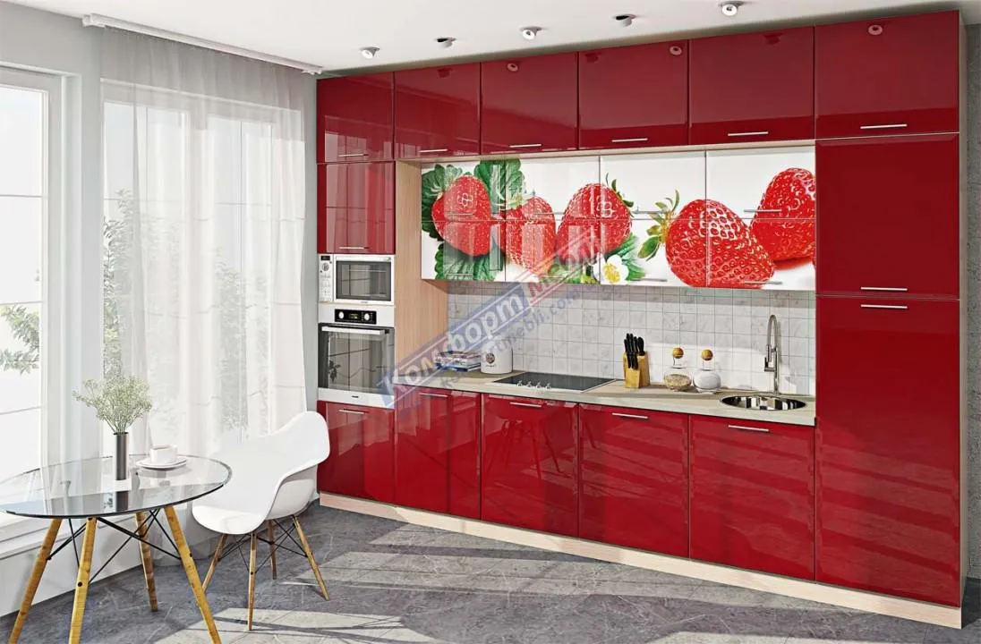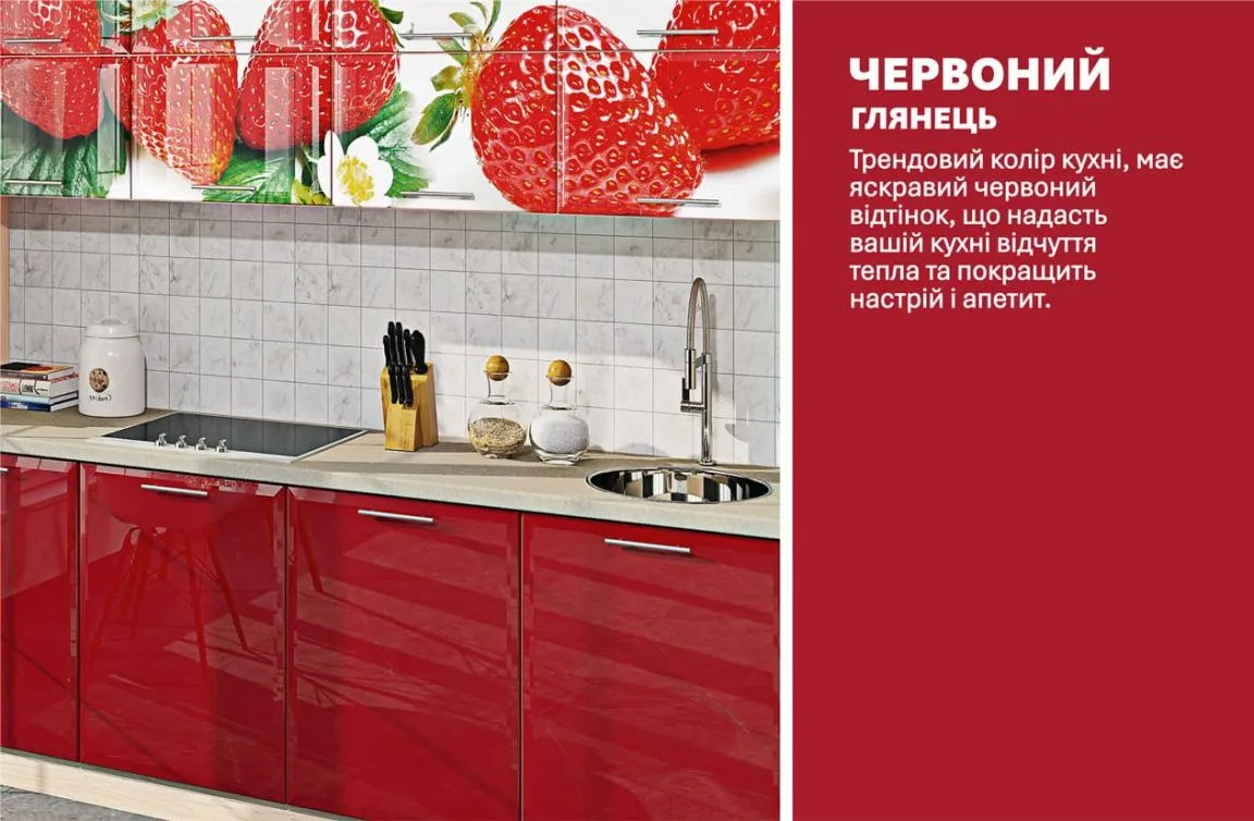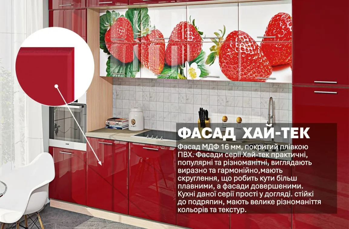Готова кухня Комфорт Хай-тек з кольоровим друком 3,6 м Червоний