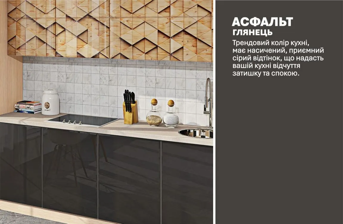 Готова кухня Комфорт Хай-тек з кольоровим друком 3,6м Асфальт