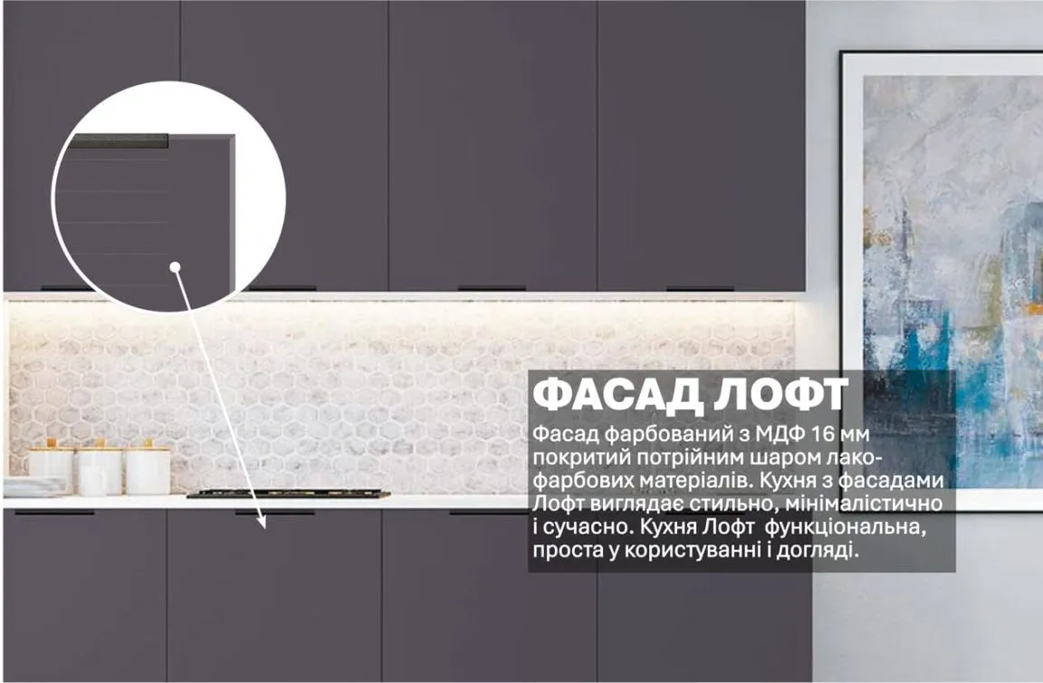 Готова кухня Комфорт Лофт 2м фарбований МДФ Графіт світлий