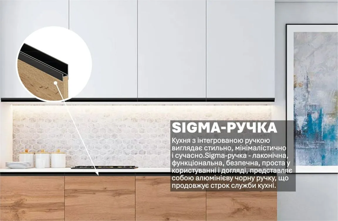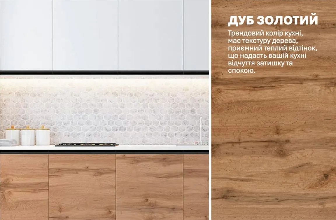 Готова кухня Комфорт Sigma ручка 200см Білий, Дуб аппалачі (золотий)