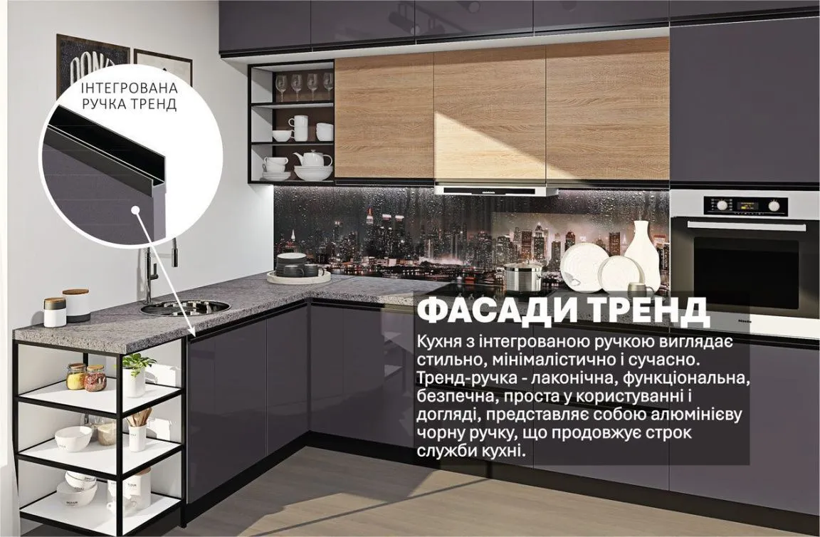 Готова кухня Комфорт Тренд 3 х 2 метра кутова Графіт, Дуб сонома