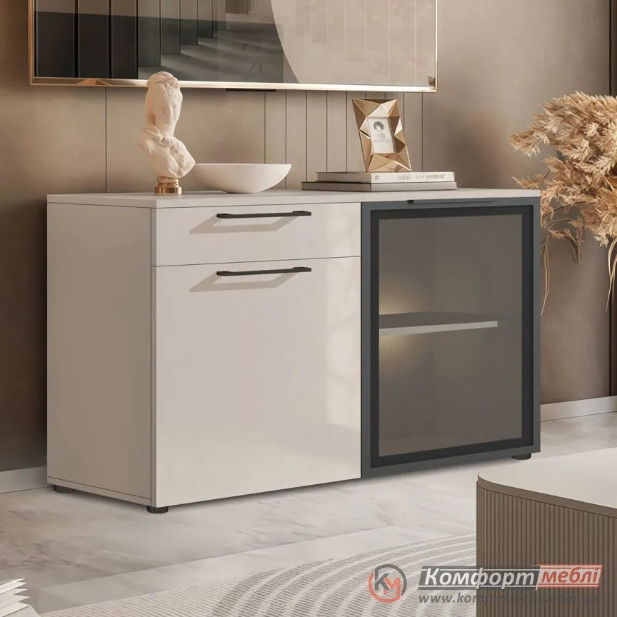 Комод з вітриною Комфорт Flex 1200 мм ДСП фасад Кашемір для посуду
