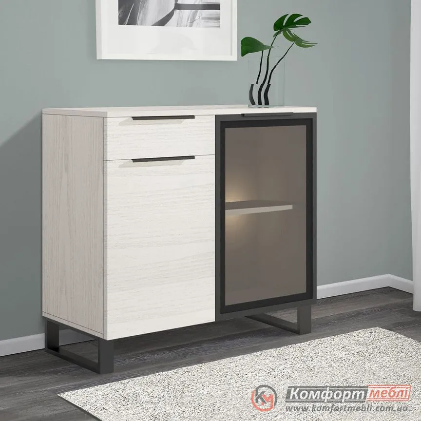 Комод зі склом Комфорт Флекс 0 8 м з ДСП фасадами Дуб білений в прихожу