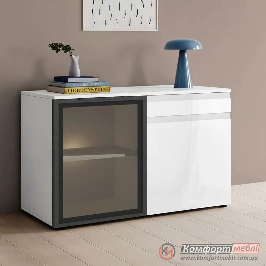 Комод зі склом Комфорт Флекс 1200 мм фарбований МДФ Білий для посуду